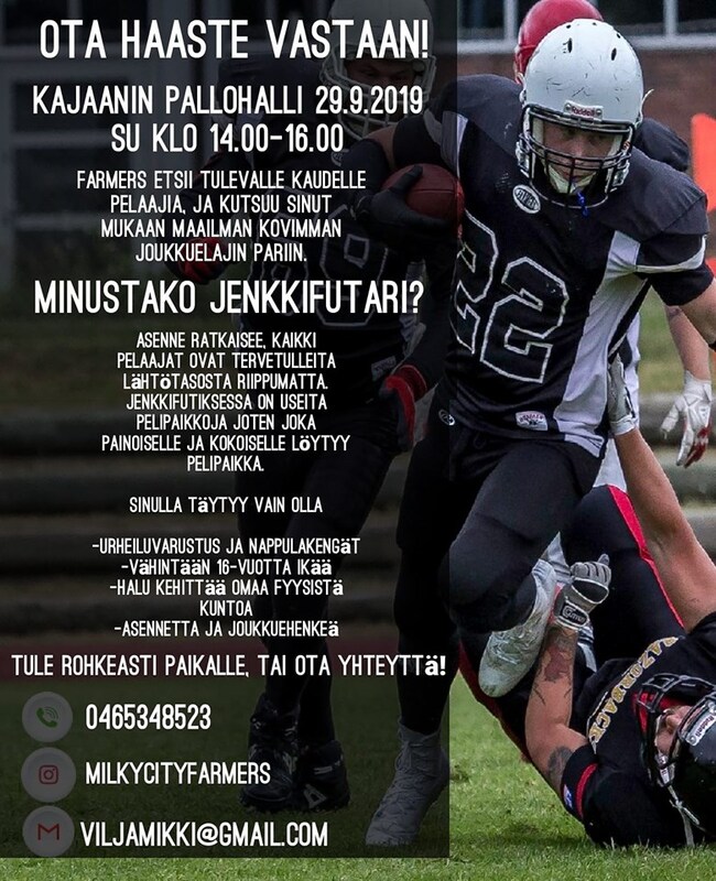 Kiuruvesi Farmers laajentaa toimintaansa. Joukkue järjestää Kajaanin palloiluhallissa su 29.9. avoimen leirin. Toinen leiri on 13.10. Iisalmen pallohallissa. Farmers etsii lisää pelaajia!