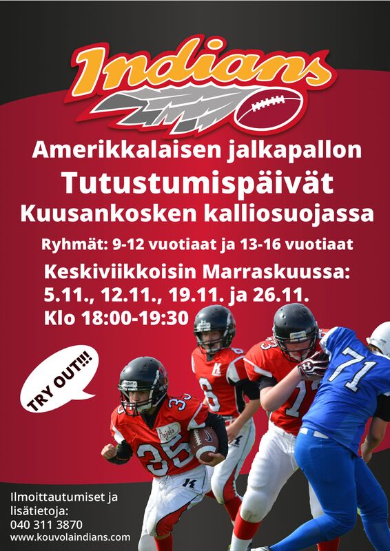 Tervetuloa tutustumaan amerikkalaisen jalkapallon junioritoimintaan! Tutustumispäivät Kuusankosken Kalliosuojassa |