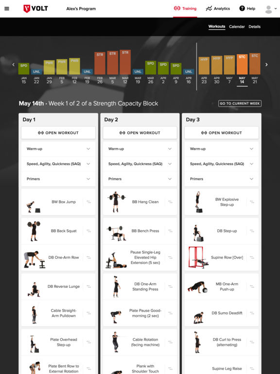 Läpi vuoden kestävä ohjelma on amerikkalaisen jalkapallon osalta kehitetty koko kehon voiman, lihasmassan ja räjähtävyyden kehittämiseen. Ohjelma tuo urheilijoille systemaattisen menetelmän kehittyä ja pitää keho toimintakykyisenä läpi harjoitus- ja kilpailukauden. Volt Ahtleticsin tarjoamat yksityiskohtaiset ja helposti sovelluksen kautta ohjelmat, valmennus- ja harjoiteohjeet. Harjoittelun seuranta auttaa valmentajaa pysymään kartalla miten urheilija edistyy, kun urheilija suorittaa harjoittelua itsenäisesti. Urheilija valitsee neljästä eri pelipaikkaohjelmasta (qb, ol&dl, wr&db&rb, fb&te&lb, k) sopivimman. Näille ohjelmille on kolme eri vaativuustasoa. Lisäksi Volt Athleticsin kautta voi harjoituttaa koko joukkuetta omalla yleisohjelmalla. Volt määrittelee painot, toistot, palautumisajat sekä vaihtelee liikkeitä ja sarjoja. Jokainen treeni on erilainen. Volt toimii kuin henkilökohtainen traineri. Volt Athletics ohjelmaan kuuluvat dynaamiset lämmittely- ja jäähdyttelyharjoitukset. Materiaaleihin on lisätty ravitsemukseen, lepoon ja nesteytykseen liittyvä osio. Oheisharjoittelua varten on tarjolla myös lyhyet nopeus- ja ketteryysosiot. Volt Athleticsin ohjelmassa on monipuolisia harjoitteita eri urheiluvammoista kuntoutuville urheilijoille. OHJELMAT ERI PELIPAIKOILLETASO 1Football Level One (3 days/week) This foundational program features 3 days/week of training in the offse-ason and is designed for football players without substantial experience in a serious strength training program. If you're not sure where to start, start here. Football Level One (4 days/week) This foundational program features 4 days/week of training in the off-season and is designed for football players without substantial experience in a serious strength training program. If you're not sure where to start, start here. Football Skill Level One (3 days/week) This foundational program features 3 days/week of training in the off-season and is designed for football wide receivers, defensive backs, and running backs without substantial experience in a serious strength training program. If you're not sure where to start, start here. Football Big Skill Level One (3 days/week) This foundational program features 3 days/week of training in the off-season and is designed for football linebackers, tight-ends, full backs without substantial experience in a serious strengh training program. If you're not sure where to start, start here. Football Linemen Level One (3 days/week) This foundational lineman-specific program features 3 days/week of training in the off-season and is designed for football linemen without substantial experience in a serious strength training program. If you're not sure where to start, start here. Football Quarterbacks Level One (3 days/week) This foundational quarterback-specific program features 3 days/week of training in the off-season and is designed for football quarterbacks without substantial experience in a serious strength training program. If you're not sure where to start, start here. Football Kickers Level One (3-Day) This foundational program features 3 days per week of training in the off-season and is designed for football placekickers and punters without substantial experience in a serious strength training program. If you're not sure where to start, start here. TASO 2Football Level Two (3 days/week) This program features 3 days/week of training in the off-season, more advanced movement progressions, and is designed for football players with 2+ years' experience in a serious strength training program. Football Level Two (4 days/week) This program features 4 days/week of training in the off-season, more advanced movement progressions, and is designed for football players with 2+ years' experience in a serious strength training program. Football Skill Level Two (3 days/week) This program features 3 days/week of training in the off-season, more advanced movement progressions, and is designed for football wide receivers, defensive backs, and running backs with 2+ years experience in a serious strength training program. Football Big Skill Level Two (3 days/week) This program features 3 days/week of training in the off-season, more advanced movement progressions, and is designed for football linebackers, tight-ends, and full backs with 2+ years' experience in a serious strength training program. Football Linemen Level Two (3 days/week) This program features 3 days/week of training in the off-season, more advanced movement progressions, and is designed for football linemen with 2+ years' experience in a serious strength training program. Football Quarterbacks Level Two (3 days/week) This program features 3 days/week of training in the off-season, more advanced movement progressions, and is designed for football quarterbacks with 2+ years' experience in a serious strength training program. Football Kickers Level Two (3-Day) This program features 3 days per week of training in the off-season, more advanced movement progressions, and is designed for football placekickers and punters with 2+ years' experience in a serious strength training program. YLEISOHJELMATP.E. Bands and Bodyweight Level One This foundational P.E. program features 5 training sessions per week and is designed to build strength and athleticism through band and bodyweight exercises. Each session is designed to fit within a single class period, and should take 30-45 minutes to complete. This program is designed for high school athletes without substantial experience in a serious strength training program. P.E. Weightlifting Level One This foundational P.E. program features 5 training sessions per week and is designed to build general strength and athleticism through balanced movement patterns. Each session is designed to fit within a single class period, and should take 30-45 minutes to complete. This program is designed for high school athletes without substantial experience in a serious strength tra