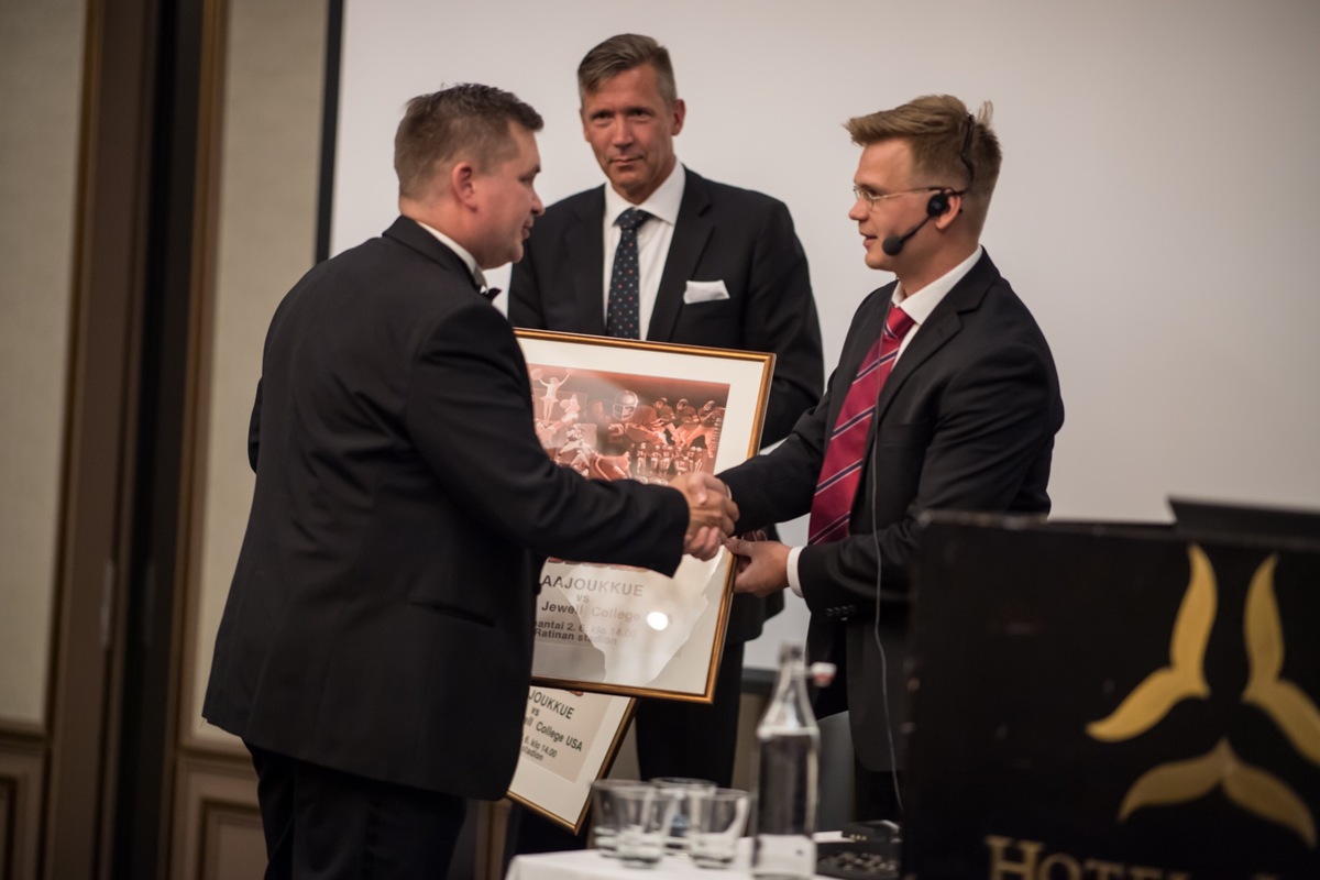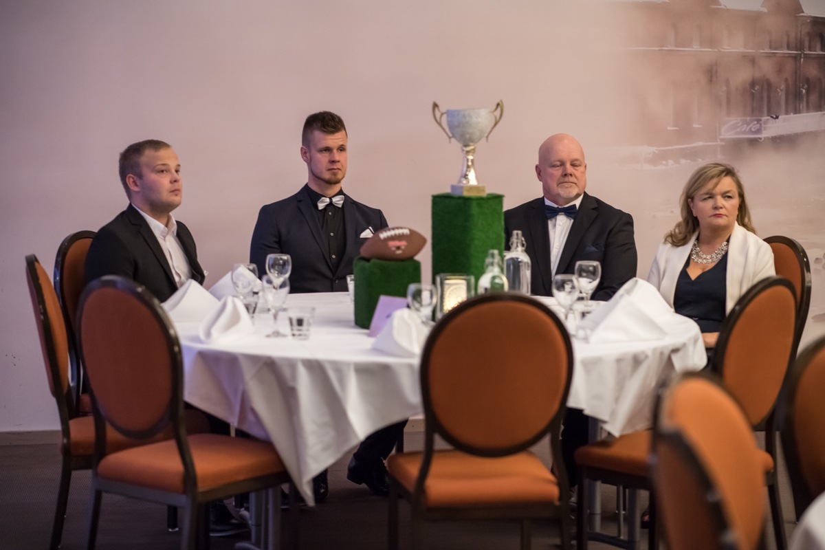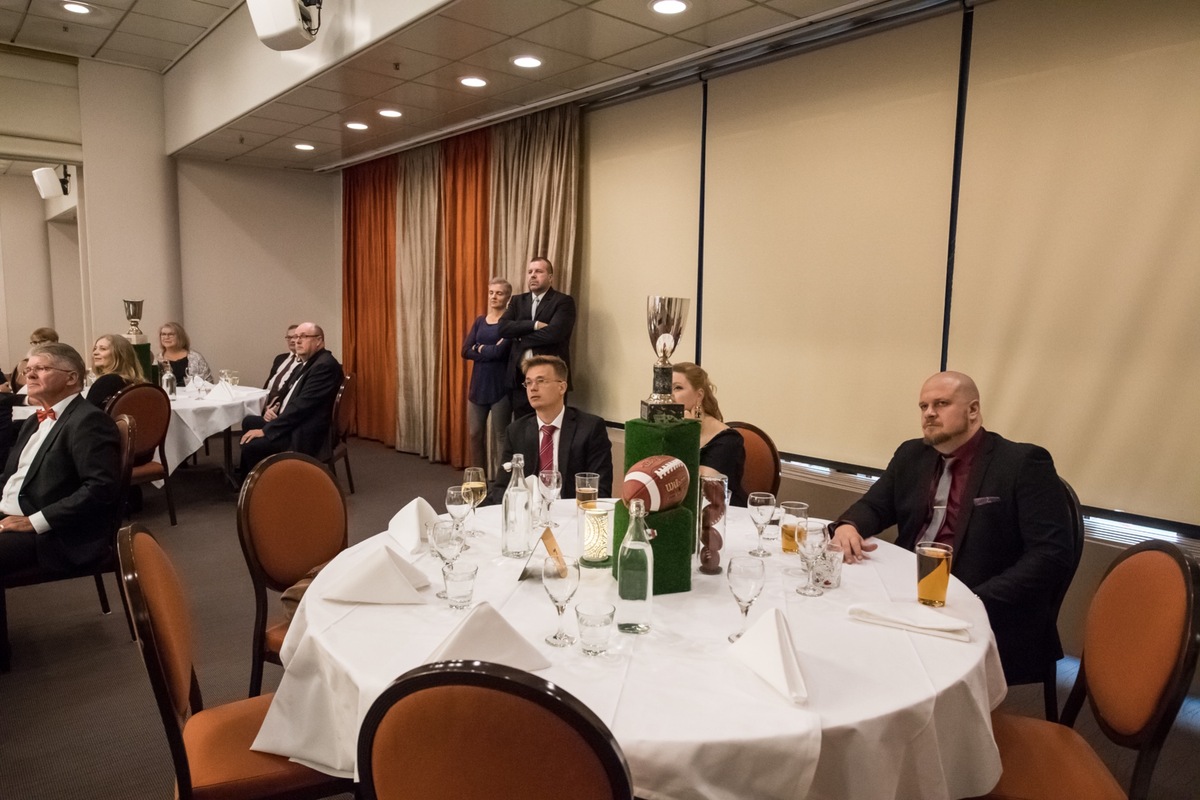 Tampereen Ilves hotellin ballroomissa vietettiin lajin juhlatilaisuutta. Tilaisuudessa jaettiin 83 ansiomerkkiä. Reilut 80 gaalaan osallistujaa pääsi juhlatunnelmaan varsin nopeasti. Ruotsin Liiton edustajat toivat pohjoismaisen tuulahduksen juhlaan. Varsinainen merkkipäivä sijoittuu joulukuulle, sillä Suomen Amerikkalaisen Jalkapallon Liitto ry on perustettu joulukuussa 1979. Ilta alkoi Liiton puheenjohtaja Roope Norosen lyhyellä puheella, jossa ydin viesti on että ns. Liiton muodostavat me kaikki lajin parissa toimivat. Tulevaisuus onkin riippuvainen aktiivisten toimijoiden panoksesta. Ilves hotellin keittiömestari kävi kertomassa juhlaväelle herkullisen menun sisällön, jonka jälkeen pyörähti käyntiin ensimmäinen historiavideo, jossa käytiin läpi vuosien huippuhetket vuosilta 1979-1989. Videoista nähtiin myöhemmin 1990-1999 osuus. 2000-2009 sekä 2010-2019 versiot jäivät teknisten ongelmien takia näkemättä. Katso SAJL huippuhetket täältä. Illan juontaja Jaakko Latva-Pukkila pyysi estradille mielenkiintoisen kaksikon. Vaahteramaljaan valmistautunut juhlaväki sai kuulla tuoreeltaan Kuopio Steelersin päävalmentaja Pekka Utriainen ja takapuolustaja Santeri Kinnunen ajatuksia tulevasta ottelusta. Roostersin päävalmentaja Mikko Koikkalainen sekä pelinrakentaja Miro Kadmiry selvisivät naureskellen Latva-Pukkilan tentistä. Tampere Rocksin perustajajäsen ja pitkäaikainen TeeDee -lehden toimittaja Kari Kallonen lahjoitti juhlavuoden kunniaksi Liitolle sekä kolmelle tamperelaispelaajalle autenttisen ottelujulisteet. Kyseessä oli ensimmäinen amerikkalaisen yliopiston ja eurooppalaisen joukkueen kohtaaminen 2.6. 1984 Tampereen Ratina Stadiumilla. Silloin pelattiin historiallinen William Jewell college vs Suomen maajoukkue ottelu, jossa olivat mukana manselaiset rb Ilkka Luoma, de Tapio Anttila sekä te Esa Kiiskinen. Toinen muistoja herättävä historialahjoitus tehtiin Espoon Viherlaaksossa 1980-luvun alussa vaikuttaneen Green Rock Gorillasin toimesta. Gorillasin delegaatio luovutti seuran taideteoksen muotoon tehdyn 30v. logon SAJL:n puheenjohtaja Roope Noroselle. SAJL ANSIOMERKIT