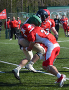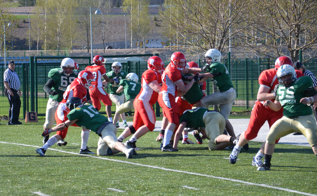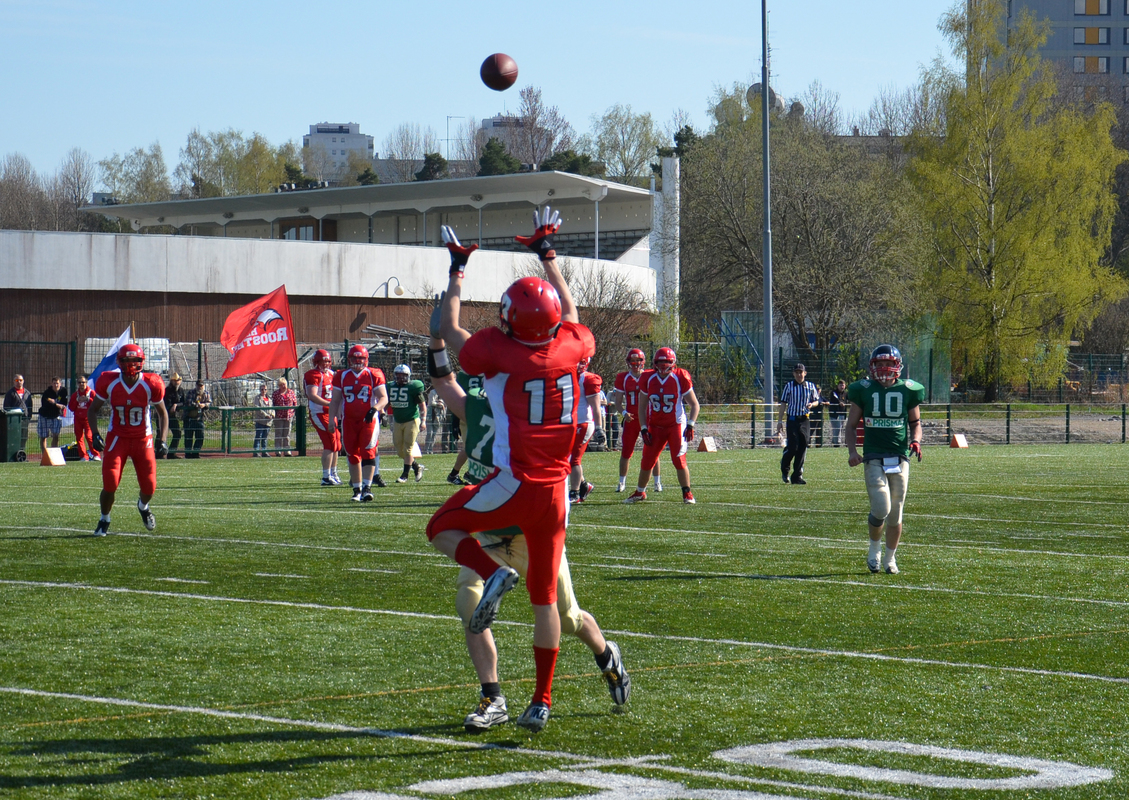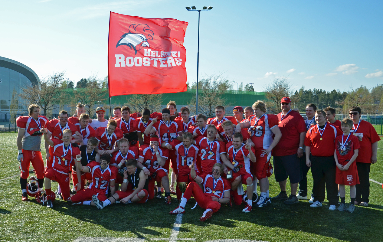Ensimmäinen pelipuolisko oli varsin tasaväkinen. Ottelun hahmoksi kohonnut Roostersin monitoimimies Ville Roitto teki ottelun kaksi ensimmäistä maalia lyhyiden heittopelien päätteeksi. Potkaisija Onni Juvonen oli varmalla päällä ja potki lisäpisteet sisään. Roosters johti 14-0. Crocodiles oli kuitenkin latautunut otteluun huolellisesti ja pelinrakentaja Walter Vasanoja löysi heittonsa kohteeksi maalialueelle kipaisseen Juuso Mäkisen. Jaska Värinen juoksi kaksi lisäpistettä. Härmän nopein takamies Kalle Laitinen pohjusti seinäjokisten tasoistusmaalin, jonka Värinen juoksi maalialueelle. Tilanne 14-14. Roostersin päävalmentaja Jarmo Lahti. - tällä kertaa materiaali ratkaisi. Meidän pojat jaksoivat loppuun asti. Joukkue on saatu hyvää malliin paljolti sen takia, että pelitapa on sama kun edustusjoukkueessa. Valtaosa pelaajista on mukana edustusjoukkueen ringissä ja saanut riittävästi toistoja. Hauskan lisän otteluun toi ryhmä latvialaisia kiekkofaneja, jotka jaksoivat päristyttää rumpuaan koko ottelun ajan sekä kannustaa molempia joukkueita. Ottelun parhaina palkittiin: Team MVP Benjamin Snåfs, Seinäjoki Crocodiles Team MVP Onni Juvonen, Helsinki Roosters Game MVP Ville Roitto, Helsinki Roosters Uutinen Roostersin sivuilla. |
