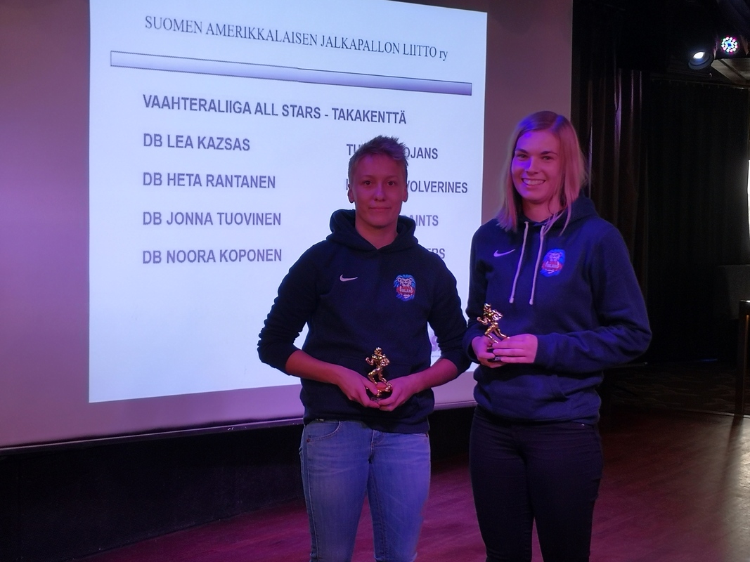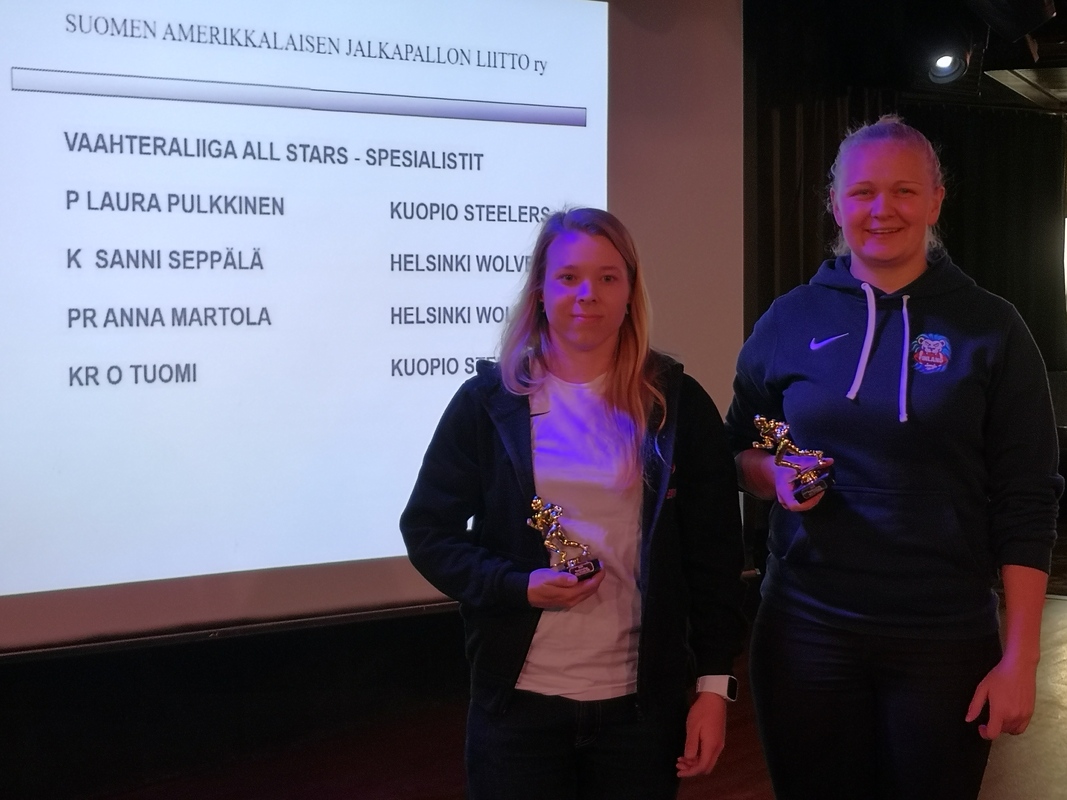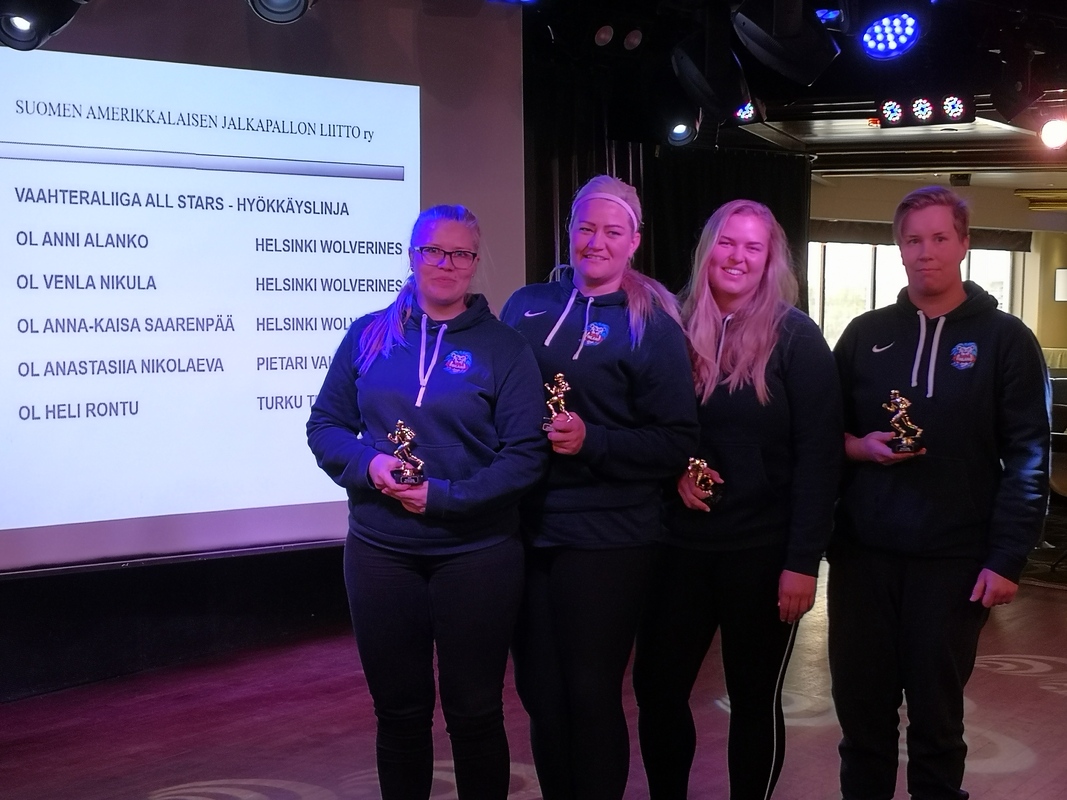 VAAHTERALIIGA ALL STARS - LINEBACKERIT LB ESSI SAASTAMOINEN KUOPIO STEELERS LB ELINA KERO HELSINKI WOLVERINES LB TIINA MÖTTÖNEN HELSINKI WOLVERINES