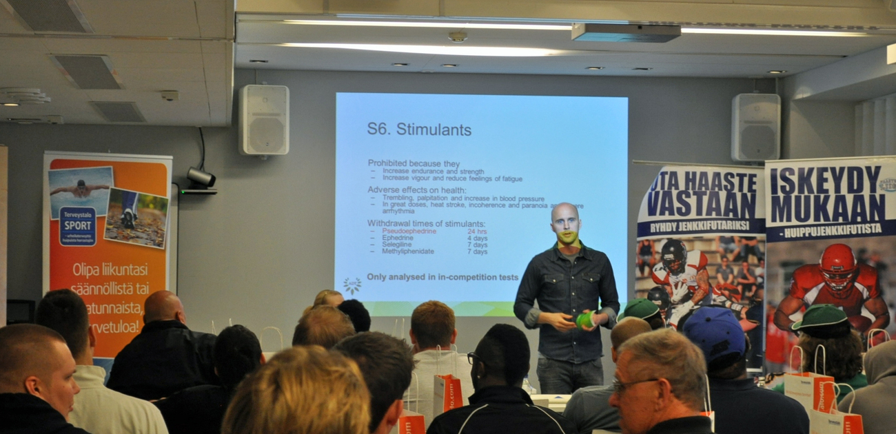 Vaahteraliiga 2013 potkaistiin käyntiin, vaikka sade vähensi yleisön määrää Narinkkatorilla. Vaahteraliiga kick off -päivä alkoi infotilaisuudella Terveystalon luentosalissa. Puheenjohtaja Roope Noronen esitteli perustietoutta SAJL:stä sekä säännöistä. Mukana oli eri seurojen pelaajavahvistuksia sekä valmentajia Vaahteraliigan lisäksi myös I-divisioonasta. Paikalla oli myös Yhdysvaltain suurlähetystön edustajat oman esityksensä kanssa. Suomen Antidoping ry luennoi kuulijoille englanniksi keskeisiä asioita antidopingin suhteen. Sateen vuoksi Narinkkatorille kaavailtu puskukelkan työntökisa jäi väliin. Vaahteraliigan 2013 kynnyksellä valmentajat ja pelaajat kertoivat haastatteluissa tuoreita kuulumisiaan. |