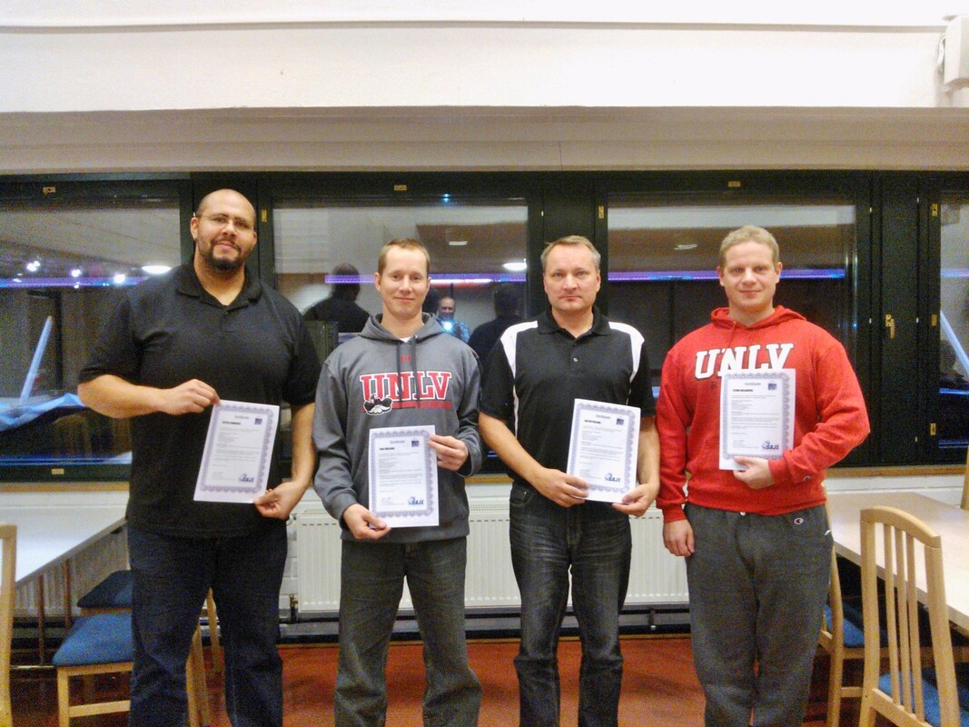 Kurssidiplomin saivat tässä vaiheessa vas. Seppo Evwaraye, Toni Bärlund, Jan Österlund, ja Teemu Majander.