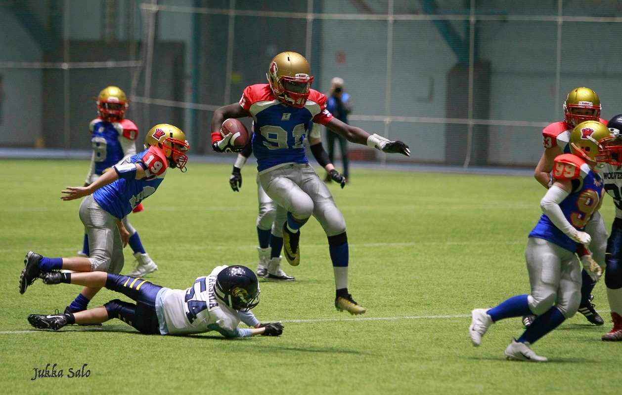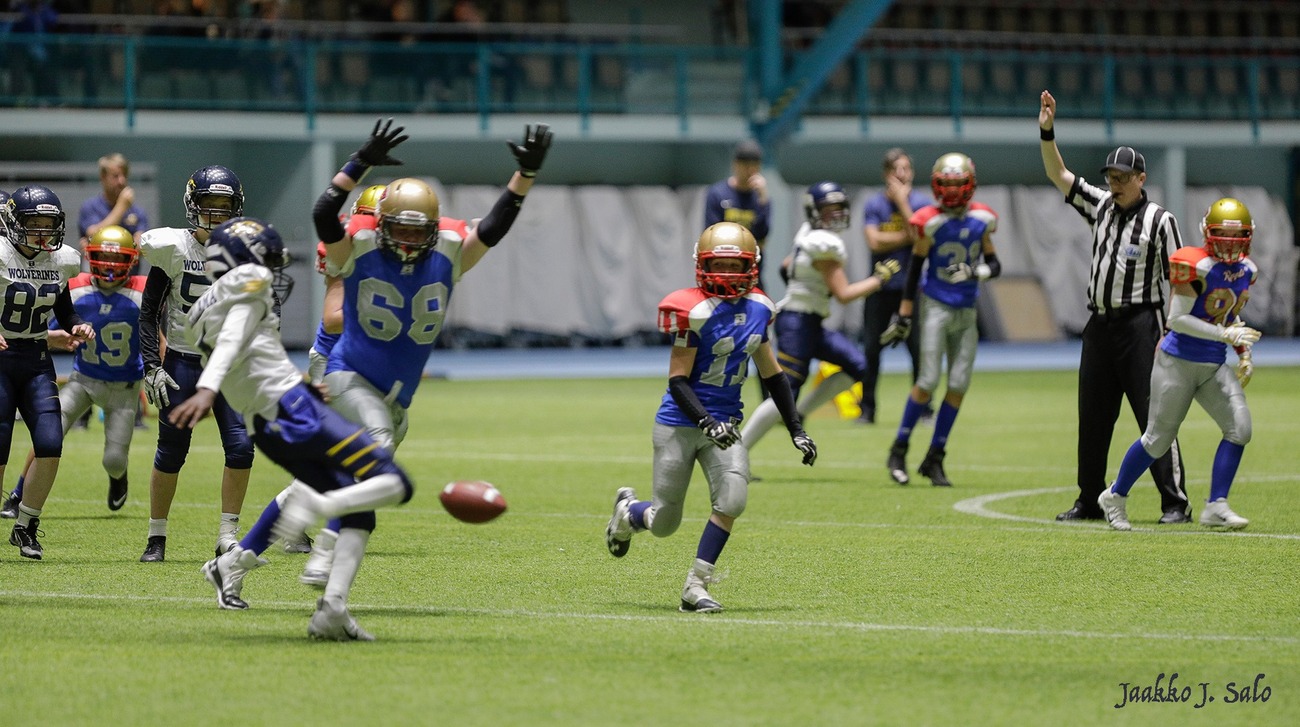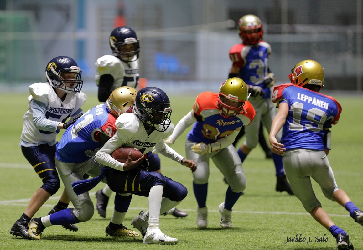 Vuoden 2020 U13-nuorten SM-finaalissa kohtasivat Wasa Royals ja Helsinki Wolverines. Wolverines voitti tiukan kamppailun lukemin 34-38. Vaasalaiset olivat voittaneet kaikki kuusi runkosarjan otteluaan ja lähtivät finaaliin ennakkosuosikkeina. Edellinen kohtaaminen ratkesi hyökkäyskilpailussaFinalistit pelasivat jo runkosarjassa äärimmäisen jännittävän keskinäisen ottelun. Helsingin Brahen kentällä peli eteni aina hyökkäyskilpailun toiselle kierrokselle, jossa vaasalaiset onnistuivat ratkaisemaan pelin sekä runkosarjan voiton Pohjanmaalle. Royalsin hyökkäyspeli on kauden aikana perustunut huippulahjakkaan Raul Khalifan vahvaan juoksupeliin. Vaahteraliigassa ja maajoukkueessa pelaavan isoveljensä jalanjäljillä kulkeva Raul on takonut joukkueelleen pisteitä taululle tasaiseen tahtiin läpi kauden. Myös finaalipelissä kaikki Royalsin maalisuoritukset kirjattiin Khalifan nimiin, viisi touchdownia sekä kaksi lisäpistesuoritusta (2p) Monipuolinen pelivalikoima ratkaisi mestaruudenWolverines päävalmentaja Veikko Viuhan mukaan voiton avaimina oli finaalipelisissä monipuolisuus: -Meillä mukavasti pääsi useita pelaajia pisteiden makuun. Hyökkäys oli tasapainoinen heitto- ja juoksuhyökkäys, joten etenkin ottelun ratkaisseet lisäpisteet olivat hyvien play action pelien ansiota. Peli oli kovatasoinen ja tasainen ja täytyy antaa vastustajalle tunnustusta viime sekunteihin asti yrittämisestä Mestarijoukkueen valmentajat valitsivat omaksi MVP:ksi numerolla 11 pelanneen Eelis Naamangan. Eelis onnistui pysäyttämään Royalsin Khalifan juoksut ratkaisevilla hetkillä ja antoi joukkueelleen mahdollisuuden voittaa pelin. Molemmat joukkueet tekivät 5 touchdownia, joten ratkaiseviksi osoittautuivat onnistumiset lisäpistepeleissä, joissa Wolverines onnistui pysäyttämään Royalsin kaksi kertaa useammin. Wolverinesin joukkueesta eniten pisteitä kirjasi tililleen pelinrakentaja Sifiso Salama, joka neljännellä neljänneksellä onnistui touchdownissa kolmesti sekä kuljetti pallon maaliin lisäpistesuorituksellaan kertaalleen. -Kundit ja tytöt jaksaneet treenata ahkerasti ja tunnollisesti ja uudet lajiin pariin tulleet saatiin tehokkaasti mukaan joukkueeseen. Tämä palkittiin tänä vuonna mestaruudella. Viuhan valmentamassa mestaruuden voittaneessa joukkueessa pelasi poikien rinnalla kaksi tyttöä. Joukkueen nuorimpana kentällä kolisteli Wilma Naamanka. 13-vuotias Pihla Viuha ehti U13-sarjan ohella käydä pelaamassa myös kauden ainoan tyttöjen pelin U20 ikäluokassa. Pisteet
