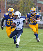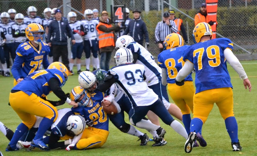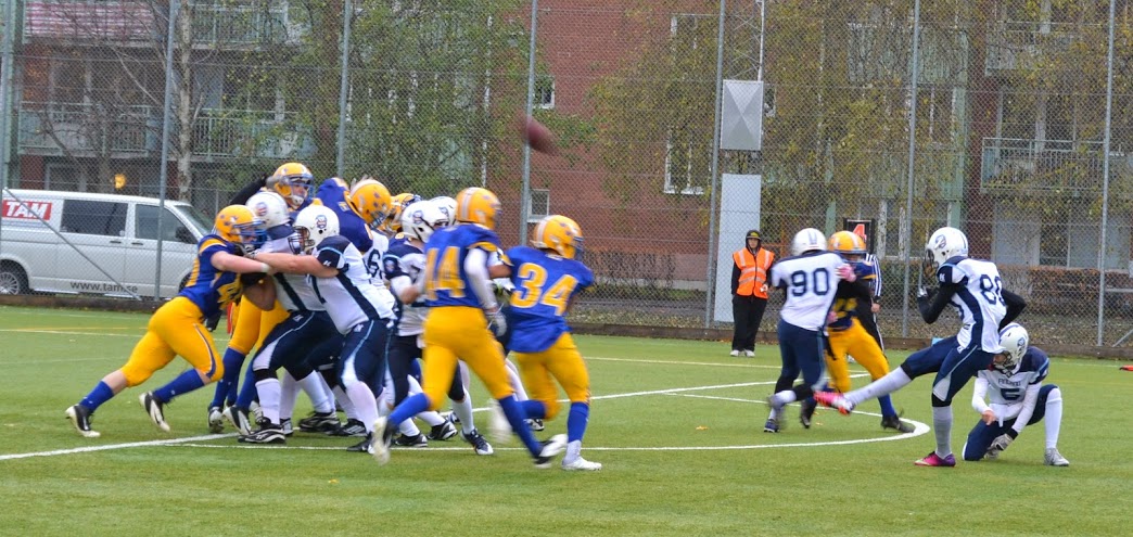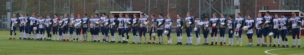 Suomi hallitsi ottelun ensimmäistä puolisko tuulisella ja sateisella Skarpnäcks IP:llä Tukholmassa. Suomen erikoisjoukkueet pelasivat hyvin ja loivat paikkoja Suomen hyökkäykselle. Ruotsalaisten pallonmenetysten johdosta Oskari Niemen luotsaama hyökkäysmiehistö pääsi hyvistä kenttäasemista maalaamaan kahdesti. Ensin Hannu Nyman otti Thomas Saleniuksen heiton kiinni. Lisäpisteen potkaisi Daniel Luoma tilanteeksi 0-7. Suomen toisen maalin juoksi Juuso Kantola. Suomi johti 0-13 ja lisäsi vielä Daniel Luoman onnistuneella kenttäpotkumaalilla taukojohdoksi 0-16. Kolmannella neljänneksellä Niko Saarijärvi vei Suomen Thomas Saleniuksen heitosta 0-23 johtoon. Viimeisellä neljänneksellä Ruotsi aloitti takaa-ajon no huddle hyökkäyksen sekä aggressiivisen puolustamisen myötä. Isännät onnistuivatkin tekemään kaksi maalia ja kaventamaan ottelua 14-23. Pelin ratkaisuhetkillä ottelun viimeisillä minuuteilla ruotsalaiset onnistuivat blokkaamaan Suomen lentopotkun, mutta syyllistyivät potkaisijaan törmäämiseen. Suomen hyökkäys kulutti ajan loppuun ja tulevaisuuden lupaukset päättivät kautensa hienoon taisteluvoittoon. | QB | | | Y.O.B | Length (cm) | Weight (kg) | | Murtoniemi | Arno | Helsinki Roosters | 1999 | 170 | 60 | | Salenius | Thomas | Tampere Saints | 1999 | 181 | 81 | | | | | | | | | RB | | | | | | | Acao | Luis | Vantaan TAFT | 1997 | 170 | 70 | | Kantola | Juuso | Oulu Northern Lights | 1997 | 162 | 66 | | Katigbak | Carl | Helsinki Wolverines | 1999 | 165 | 57 | | Nyman | Hannu | Espoo Devils | 1999 | 177 | 76 | | Soininen | Onni | Helsinki Wolverines | 1998 | 177 | 77 | | | | | | | | | WR | | | | | | | Erkkilä | Arttu | Porvoo Butchers | 1997 | 193 | 85 | | Ikonen | Antti | Kouvola Indians | 1997 | 184 | 66 | | Luoma | Daniel | Porvoo Butchers | 1998 | 185 | 70 | | Roponen | Niko | Kuopio Steelers | 1997 | 181 | 71 | | Saarijärvi | Niko | Helsinki Roosters | 1997 | 180 | 82 | | Utti | Amos | Helsinki Wolverines | 1997 | 179 | 65 | | van Heerden | Oscar | Helsinki Roosters | 1997 | 178 | 73 | | Vilpponen | Petteri | Kuopio Steelers | 1998 | 183 | 80 | | | | | | | | | OL | | | | | | | Hvitfelt | Tuomas | Turku Trojans | 1998 | 183 | 105 | | Kuipers | Okke | Porvoo Butchers | 1998 | 185 | 88 | | Lähdesmäki | Otto | Jyväskylä Jaguaarit | 1997 | 186 | 105 | | Patteri | Aleksi | Tampere Saints | 1997 | 180 | 115 | | Pääkkönen | Väinö | Porvoo Butchers | 1997 | 197 | 146 | | Rajala | Mikko | Turku Trojans | 1998 | 187 | 115 | | Yliniemi | Ville | Seinäjoki Crocodiles | 1999 | 195 | 92 | | | | | | | | | DB | | | | | | | Huhtala | Iiro | Seinäjoki Crocodiles | 1997 | 182 | 73 | | Kaleva | Joonas | Seinäjoki Crocodiles | 1998 | 174 | 60 | | Lehmussaari | Roni | Nokia Ghosthunters | 1997 | 178 | 76 | | Leimuvaara | Alex | Helsinki Roosters | 1997 | 180 | 65 | | Paananen | Jere | Porvoo Butchers | 1997 | 179 | 76 | | Pham | Andy | Porvoo Butchers | 1997 | 170 | 62 | | Tirkkonen | Jussi | Turku Trojans | 1997 | 184 | 73 | | | | | | | | | LB | | | | | | | Alarinta | Eero | Seinäjoki Crocodiles | 1997 | 181 | 78 | | Berg | Christer | Hyvinkää Falcons | 1998 | 183 | 95 | | Bull | Otso | Vantaa TAFT | 1999 | 167 | 64 | | Hevosmaa | Riku | Oulu Northen Lights | 1997 | 172 | 81 | | Kontio | Arttu | Porvoo Butchers | 1997 | 182 | 85 | | Korpela | Markus | Turku Trojans | 1998 | 176 | 85 | | Naarala | Olli | Oulu Northen Lights | 1998 | 183 | 80 | | Seppänen | Kalle | Porvoo Butchers | 1998 | 182 | 85 | | | | | | | | | DL | | | | | | | Kaunismäki | Miikka | Seinäjoki Crocodiles | 1998 | 185 | 93 | | Matikainen | Konsta | Jyväskylä Jaguaarit | 1999 | 177 | 84 | | Mäkelä | Eero | Helsinki Roosters | 1997 | 185 | 90 | | Määttälä | Daniel | Brussels Tigers | 1998 | 175 | 112 | | Oinonen | Otto | Hyvinkää Falcons | 1998 | 187 | 113 | | Saarenpää | Leevi | Porvoo Butchers | 1997 | 174 | 105 | | Tanninen | Kalle | Kuopio Steelers | 1998 | 190 | 95 | | Tavi | Veeti | Porvoo Butchers | 1999 | 187 | 105 |