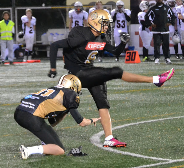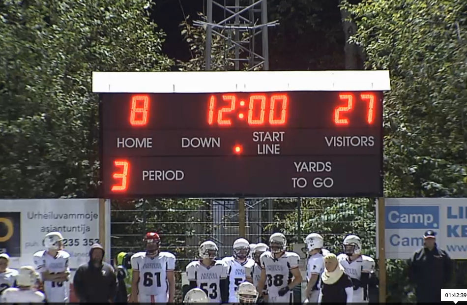 Turussa pelattiin huippujännittävä nuorisofinaali ennätysyleisön edessä. U17 kuninkuus Porvooseen U19 sarjan mestaruuden jatkoksi. Pronssit Helsinki Wolverinesille. Katso huikean finaalin video stream tästä Alkutunnustelun jälkeen molempien joukkueiden puolustukset siirtyivät parrasvaloihin, sillä ottelun kaksi ensimmäistä maalia tehtiin puolustusten tahoilta. Ensin Porvoon Kristian Metsämäki rähmäsi puolessa välissä kenttää, kun kulmapuolustaja Veikka Kuisma täräytti pallon irti. Tukimies Markus Korpela juoksi 60 jaardia maaliin vahvan blokkaussaattueen perässä. Juhani Veijula lisäsi U17 potkusäännön mukaisesti 2 lisäpistettä potkullaan. 8-0. Sitten Butchers tukimies Dan Forsberg vastasi seuraavasta pistesuorituksesta. Forsberg luki peliä tarkasti ja katkaisi Heikki Toivolan ulos suuntautuneen heittokuvion ja palautti pallon maaliin. Daniel Luoma potkaisi lisäpisteet varmasti. 8-8. 1:30 jäljellä ensimmäistä neljännestä. Trojansin Heikki Toivolan heitot eivät osuneet kohdalleen. Runkosarjan aikana heittopeli oli sujunut mallikkaasti, mutta finaalin ensimmäisellä puoliskolla aikaikkunat ja vapaat paikat olivat vähissä. Turku oli yrityspelissään hankalassa asemassa, kun väärät aloitukset ja rikkinäiset pelit pitivät joukkueen usein 3. yritys ja +10 jaardia tilanteissa. Kenttäasemasotaa vaikeutti Daniel Luoman kaksi kaksi touchbackiä aloituspotkuissa sekä hývin onnistuneet lentopotkut, joista yksi oli 70 jaardia pitkä. Porvoo Butchers pelasi pitch-pelin, jossa sentteri Okke Kuipers teki mallikkaan pull outin ja johti blokkausryhmää menestyksesellä. Kristian Metsämäki kiitti ja juoksi vapaana oikeasta laidasta 35 jaardia maaliin. 8-16 Luoman lisäpisteiden onnistuessa. Trojans muutti ilmettään hyökkäyksessään. Leo Lundberg ja Markus Korpela kantoivat suoraviivaisesti palloa eteenpäin. Trojansin hyvä vire jysähti kuitenkin syötönkatkoon. Loistavan ottelun pelannut Metsämäki nappasi taitavasti syötökatkon ja toi pallon kolmen jaardin päähän maalilinjasta 26 jaardin palautuksella. Porvoo pyrki heittämään kolme kertaa, mutta tällä kertaa ilman tulosta. Yhden ratkaisutaklauksen teki15-vuotias tukimies Olli Rajala. Neljännellä yrityksellä Daniel Luoma potkaisi ohi ja tilanne säilyi 8-16 numeroissa. Seuraavaksi nähtiin illan ensimmäinen erikoisjoukkuemaali. Butchersin onnistui blokkaamaan Trojansin lentopotkun ja pääsi peittämään irtopallon kun pelikellossa oli vajaa kolme minuuttia jäljellä toista neljännestä. Butchers potkaisi lisäpisteet Luoman johdalla ja johti ottelua 8-24. Heikki Toivola otti ohjaksia omiin käsiin ja juoksi vaarallisesti muutaman kerran. Myös Veikka Kuisma Trojansin laitahyökkääjistä antoi varoitusmerkkejä kiinniotoillaan. Turkulaisten tuskaksi muodostuivat syötönkatkot ja kova takaa-ajo katkesi lahtelaislähtöisen Brandon Yli-Savolan ottamaan interceptioniin. Porvoon takapuolustajat olivat hienosti hereillä ensimmäisellä jaksolla. Jatkotilanteesta ei kuitenkaan saatu pisteitä ja tauolle mentiin 8-24 porvoolaisten johdossa. Toisella pelipuoliskolla nähtiin sisuuntunut Trojans-miehistö. No huddle -hyökkäys oli oikea veto Trojansin hyökkäyksessä ja Heikki Toivola heitti hyvällä rytmillä onnistuneesti niin Veikka Kuismalle ja Eemeli Valkamolle. Toivola juoksi itse kolmen jaardin päähän maalista, mutta harmittavasti jälleen kerran tilanteessa todettiin kiinnipito. Veikka Kuisman seuraava pitkä kiinniotto avasi kuitenkin mahdollisuudet pisteiden tekoon. Toivola juoksi uudestaan itse ja vei pallon jalan päähän maalista. Markus Korpela juoksi lähietäisyydeltä 6 pistettä. Juhani Veijula potkaisi varmasti pallon Yläkentän koivikkoon. 16-24. Illan toisen erikoisjoukkuemaalin teki Kristian Metsämäki. Hän järkytti kotiyleisön palauttamalla aloituspotkun aina maaliin asti. Tilanne 3. neljänneksellä 16-32 Daniel Luoman potkun onnistuessa. Toivola-Kuisma akseli toimi ja parivaljakko toi turkulaiset hyvään kenttäasemaan. Porvoolaisten puolustus oli kuitenkin kovana ja piti linjansa neljän yrityksen ajan. Toivola yritti kaikkensa ja juoksi jalkansa puuduksiin pelaamalla lähes kaikki yritykset ottelussa kolmannen jakson puoleen väliin asti. Porvoon hyökkäys eteni onnistuneilla pelikutsuilla. Vaivattoman näköisesti juossut Kristian Metsämäki toi palloa eteenpäin. Hiski Niskanen puolestaan onnistui laitahyökkääjän screen-pelillä tuomaan pallon puoleen kenttään. Daniel Luoma pääsi lopulta lisäämään 3 pistettä kenttäpotkumaalilla 16-35 tilanteeksi. Toisen polven futari laitahyökkääjä Jasper Tenko otti kolme hyvää koppia saman driven aikana ja toi turkulaiset maalintekoalueelle. Hyökkäyslinja piti heittoajan maximissaan ja näin Veikka Kuisma karkasi puolustajien selän taakse ja viimeisteli 25 jaardin pituisen maalin. Veijula potkun myötä tilanne kaventui numeroihin 24-35. Turkulaiset puolustivat asemiaan 3 ja ulos -teemalla kotiyleisön kannustaessa hurjasti. Daniel Luoman lentopotku jäi lyhyeksi. Trojans pääsi hyökkäämään rangaistuksen jälkeen 35 jaardin päästä maalista. Veeti Tavi taklasi keskelle suuntautuneet Eemeli Valkamon juoksut, mutta Jasper Tenko oli pelipäällä ja teki lopulta maalin Toivolan tarkasta syötöstä. Veijula potkaisi pallon sisään 32-35. Peliaikaa oli jäljellä 5 minuuttia tunnelma iltaottelussa oli katossa. Porvoon hyökkäys oli jumissa toisella pelipuoliskolla. Hurja saippuapallo-yritys, jonka johdosta Butchers ottamaan rajusti pakkia. Vasen tackle Sakke Siltakorpi onnistui peittämään pallon. Nuorten miesten pelihurmio oli käsinkosketeltava. Dan Forsberg pelasi varman pelin vaikeaa isokoista Juhani Veijulaa vastaan. Robert Johnsonin money-play Tenkolle epäonnistui riskitilanteessa neljännellä yrityksellä. Porvoo sai pallon 15 jaardin päästä turkulaismaalista. Väärä aloitus vei joukkuetta taaksepäin. Mutta kentän kovapäisin kaveri Kristian Metsämäki jakso