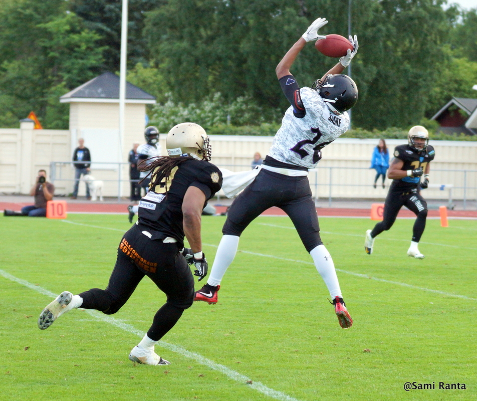 Sagne haluaa kehittyä GFL:ssä uudelle tasolle Sebastien Sagnen (188cm/90kg) ura amerikkalaisessa jalkapallossa on ollut matalalentoa alusta asti. Eurooppalaisittain perinteisempää jalkapalloa pitkään pelannut Sagne liittyi Helsinki Wolverinesin II-joukkueeseen vuonna 2012 ja nopeana pelaajana päätyi keskushyökkääjäksi. Jo ensimmäisen pelikauden lopulla nuori pelaaja sai mahdollisuuden kokeilla vauhtia Vaahteraliigassa. Seuraavana vuonna Sagne olikin jo Cedric Johnsonin johtaman Wolverines-hyökkäyksen avainhahmoja ja jatkuva pelote varsinkin pitkiä kuvioita juoksevana laitahyökkääjänä. Maajoukkue-edustukset sekä hyvin sujunut kausi 2015 Helsinki 69ersissa avasivat portit Saksan liigaan. Euroopan kovatasoisimpaan sarjaan Sagnen tavoite on selvä. – Hyvillä mielin lähdetään matkaan. Ennen kaikkea lähden kehittymään. GFL:n taso ei yhtenä Suomen lupaavimmista pelaajista pidettyä Sagnea huoleta. – Saksassa ehkä all around –taso on kovempi kuin Suomessa, mutta yksittäisten pelaajien kohdalla ollaan aika samalla tasolla. Olen pelannut myös Suomen kentällä kovia jenkkipuolustajia vastaan ja saanut onnistumisia.
