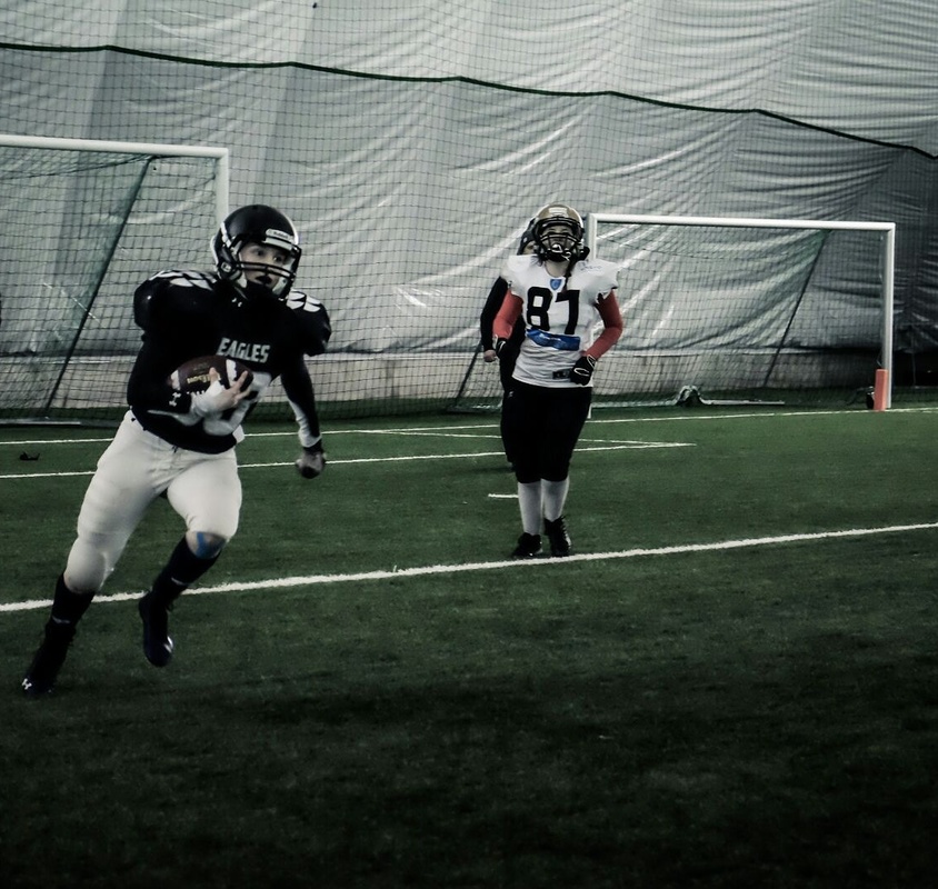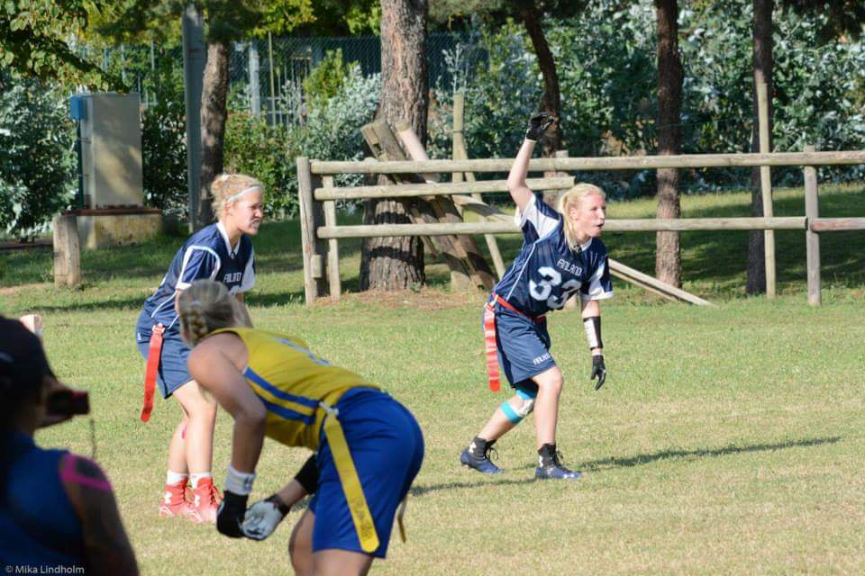– Voin tarvittaessa kantaa vaikka vettä kentällä. Kunhan saan olla lajin parissa. – Ja hyödyllinen seuralle. Näin pohtii omaa valmennusunelmaansa Essi Söderholm, 21. Kuin huomaamatta Söderholm tiivistää pariin lauseeseen monen valmentajan pyyteettömyyden – teen tätä, koska siitä on muille hyötyä. Nuoresta iästään huolimatta Söderholm on ehtinyt kokemaan jenkkifutiksen parissa paljon. Lippupallosta kokemusta on niin EM- kuin MM-kisoistakin. Amerikkalaista jalkapalloa kotkalainen on pelannut niin Kouvola Indiansissa kuin Helsinki Roostersissa. Viime syksystä alkaen Söderholm on toiminut kotikaupunkinsa Kotka Eaglesin naisten joukkueessa pelaajavalmentajana. Ennakkoluuloton tutkimusmatka uuteen urheilulajiin Söderholm on aina innostunut kaikesta liikunnasta. Lajeja hän on kokeillut laidasta laitaan. – Urheilu on aina ollut minulle se ykkösjuttu! Pysyväksi harrastukseksi mikään kokeilu ei kuitenkaan johtanut. Söderholmin harrastuksia olivat liikunta ja urheilu, mutta ei mikään yksittäinen laji. 14-vuotiaana Söderholmille tuli tunne, että jotain uutta piti kokeilla. Kotka Eagles ei ollut vielä tehnyt uutta tulemistaan jenkkifutiksen seurakartalle eikä amerikkalaisesta jalkapallosta juurikaan puhuttu perinteikkäässä jalkapallo- ja koripallokaupungissa. – En minä tiennyt silloin tiennyt, että pelataanko tätä lajia Suomessa ylipäätään tai että pelaavatko naiset. Jotenkin oli kuitenkin sellainen tunne, että siitä saattaisin tykätä. Ensin auttoi internet, sitten isä. – Tutkin nettiä ja huomasin, että Kouvolassa voi pelata. Sanoin isälle, että saat viedä. Isä vei ja sai viedä sen jälkeen useastikin. – Se oli yhdet treenit ja tiesin, että lajini on tässä. Meidän jengi, minä ja mun kaupunki Söderholmin laji-innosta - ja toisaalta sopeutumisesta ja päättäväisyydestä - kertoo se, että hän on aina osannut ottaa paikkansa joukkueesta. Ensimmäisenä pelivuotenaan hän pelasi poikkeusluvalla naisten sarjassa, seuraavana vuonna D-junioripoikien kanssa samassa joukkueessa. Kun tämän jälkeen poikkeusluvalla ei enää saanut pelata poikien sarjassa, päätti Söderholm etsiä vaihtoehtoja muualta. – Harjoittelin talven Porvoossa Butchersin kanssa ja pelasin kesän 2011 Roostersissa sekä alle 21-vuotiaiden naisten sarjaa että SM-sarjaa. Tosin tuo kausi päättyi aikaisessa vaiheessa loukkaantumiseen, mutta syksyllä pääsin takaisin treeneihin. Lopulta pääkaupungin visiitti kesti neljä kautta. Vaikka Söderholm saavutti menestystä, se ei aina tuntunut omalta. Se ei ollut Kotka, joka voitti. – Kaikki joukkueet, joissa olen saanut pelata, ovat olleet minulle tärkeitä. Silti on aina ollut haave, että saisin vielä joskus pelata omassa kotikaupungissani. Kun voitimme Kouvolassa ja joku sanoi, että Kouvola on kova, se ei jotenkin koskettanut minua. Joukkueen perustamisen lyhyt oppimäärä Söderholmin pelatessa Helsingissä, oli amerikkalainen jalkapallo alkanut nostamaan päätään Kotkassa. Eaglesin miesten joukkue oli aloittanut jälleen toimintansa ja myös korkeakoulujenkkifutis oli tullut osaksi Kymenlaakson ammattikorkeakoulun opiskelijaelämää. Kotkassa oli Söderholmin lisäksi jo muutama muukin jenkkifutiksesta kiinnostunut nainen. Vuonna 2015 Söderholm suoritti varusmiespalvelustaan Onttolassa, Joensuun lähistöllä. Oma pelaaminen rajoittui puolikkaaseen kauteen Kouvola Indiansissa, mutta visio tulevasta oli selvä. – Kävimme heittelemässä ja harjoittelemassa Kotkassa aina, kun minulle oli vapaata. Muutama muukin mimmi oli innostunut ja sanoin heille, että kunhan pääsen pois, niin sitten elokuussa laitetaan joukkue kasaan. Visio ei jäänyt pelkäksi suunnitelmaksi. – Järjestimme try out –päivän. Teimme flyereitä ja jaoimme niitä. Tavoitteemme oli saada mukaan vähintään 15 uutta pelaajaa. Uusia pelaajia tuli 25. Kotkaan syntyi uusi naisten jenkkifutisjoukkue.