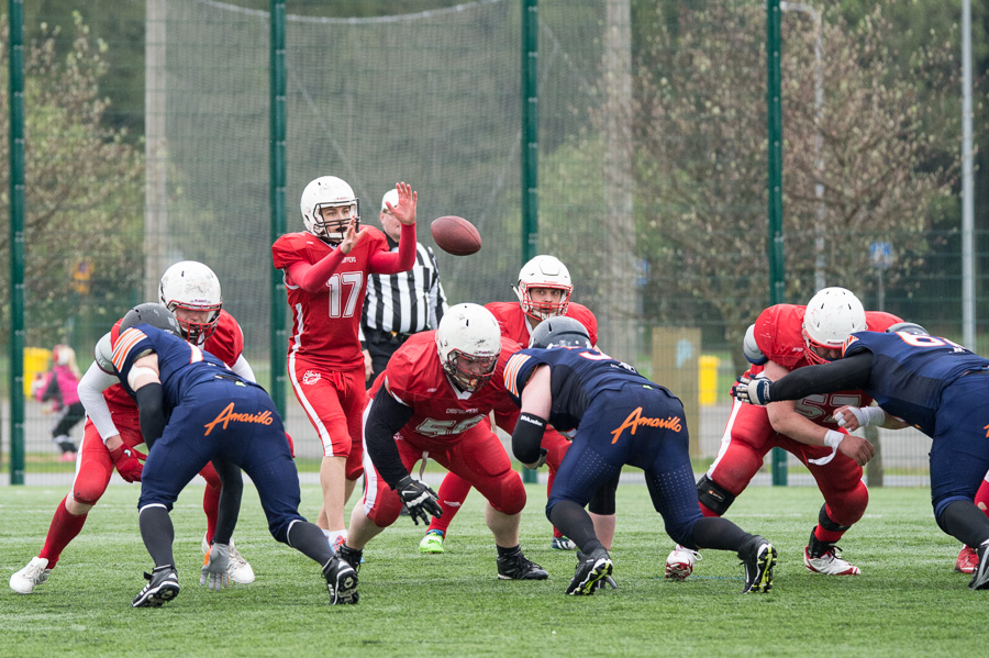 Hanko Sun City taipui Mikkelissä Bouncersille vaivaisella pisteellä II-divisioona käynnistyi lauantaina varsinaisella trillerillä, kun Mikkelissä olivat vastakkain viime kauden pudotuspelijoukkueet Bouncers ja Hanko Sun City. Bouncers nousi kahden touchdownin takaa-ajoasemasta lopulta yhden pisteen voittoon lukemin 15–14. Sun Cityn pelinrakentajana debytoinut Eino Matikainen johti punapaitaisten heittohyökkäystä tehokkaasti ja löysi ensimmäisellä puoliajalla touchdown-heitoillaan ensin sisemmän laitahyökkääjän Lauri Olsbon ja hetkeä myöhemmin Samuli Alppirannan. Joakim Backman potkaisi molempien maalien perään lisäpisteen haarukkaan ja vierasjoukkue oli siirtynyt 14–0 –johtoon. Bouncersin hyökkäys puolestaan ei löytänyt rytmiään ja Sun Cityn puolustus riisti syötönkatkoilla pallon kolmesti itselleen. Ennen puoliaikaa Bouncersin juoksupelin moottori Ilkka Jämsä kuitenkin kavensi tilannetta touchdownilla. Olli Karhun onnistuneen lisäpistepotkun myötä puoliaikaa vietettiin lukemissa 7–14. Ottelun toinen puoliaika oli puolustusten hallintaa, pistesuorituksia saatiin odottaa aina viimeisille sekunneille asti. Bouncers-hyökkäys kehitti melkoisen ihmeen ja eteni reilut puoli minuuttia ennen ottelun loppua ensin neljännen yrityksen onnistumisella uusiin yrityksiin yli 20 jaardin päästä. Näkyvästi Bouncersin heittopelissä esiintynyt Johannes Jauhiainen koppasi post-kuvion kiinni ja kuljetti pallon kahden jaardin päähän maalialueesta. Kuusi sekuntia ennen päätösvihellystä Jämsä löysi toistamiseen tiensä maalialueelle ja tilanne oli 13–14. Mikkeliläisten päävalmentaja Esa Suhonen otti riskin ja päätti pelata lisäpisteyrityksen. Jämsä sai pallon ja juoksi sen uudelleen maalialueelle. Bouncers nousi pisteellä ohi, ja lukemat 15–14 säilyivät loppuun asti. – Meille tuli aivan liikaa kolme ja ulos -tilanteita emmekä saaneet tarpeeksi onnistumisia hyökkäyspäässä, Sun Cityn päävalmentaja Tony Anderson kommentoi Sun Cityn otteluraportissa. – Puolustus sen sijaan pelasi hyvin ja piti meidät mukana ottelussa. Meidän pisteetkin tulivat puolustuksen tarjotessa hyökkäykselle hyvät lähtöasetelmat. Samoilla linjoilla asia nähtiin myös mikkeliläisten leirissä. – Jämsä nousi ottelun ottelun hahmoksi, kommentoi Bouncersin Petri Toivanen. – Kummankin joukkueen hyökkäys oli vielä hakemista ja varsinkin heittopeli oli aika takkuista.