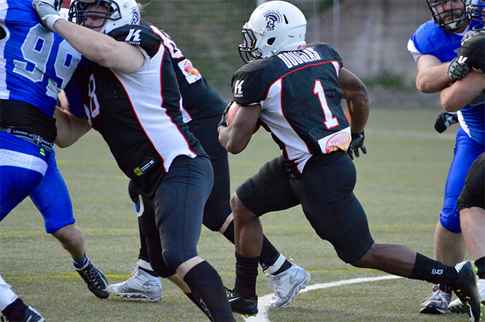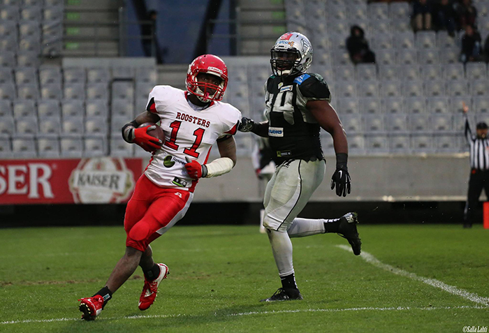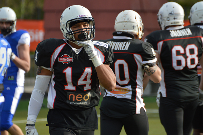 ![]() Bernard Luster oli näkyvässä roolissa huhtikuussa, kun Roosters kohtasi Itävallassa Swarco Raidersin. Kiinniottojen lisäksi Lusterin nopeus korostuu potkunpalautuksissa. Kuva: Salla Lahti ![]() Trojansin Roman Runner tulee esiintymään sunnuntaina hyökkäyksessä, puolustuksessa sekä erikoisjoukkueissa. Puolustuksessa Runner pelaa ensisijaisesti ulomman tukimiehen paikalla. Kuva: Kari Toivonen ![]() Keskushyökkääjä Jaycen Spears on Roostersin juoksupelin tärkein yksittäinen pelaaja, mutta viisipäinen hyökkäyksen linja Iiro Luodon johdolla on ratkaisevassa roolissa myös sunnuntaina. Kuva: Salla Lahti |
