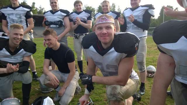 ![]() Wolverines-tukimies Antonio Harris (oik.) oli joukkueensa toiseksi ahkerin taklaaja Ari Päivärinnan jälkeen. Huskies eteni Wolverinesia vastaan 317 jaardia, mutta varsinkin maalialueen läheisyydessä Wolverines-puolustus oli vahva. Kuva: FSC Media ![]() Huskiesin Xavier Ajuwon oli odotetun vaarallinen ja nopea. Brittikeskushyökkääjä juoksi 107 jaardia, otti heittoja kiinni 41 jaardin edestä ja teki joukkueensa ainoan touchdownin. Kuva: FSC Media ![]() Huskiesissa ensimmäisen ottelunsa pelannut laitahyökkääjä Jani Heinisalo (vas.) kuljettamassa palloa. Myös taklaukseen valmistautuva Jarmo Nyberg pääsi perjantaina juoksemaan pelivälineen kanssa. Nyberg palautti avausjaksolla rähmäyksen maaliin asti. Kuva: FSC Media ![]() Jyväskylän Jaguaarien Graig Maynard aloitti toisen kautensa petokissalauman pelinrakentajana mallikkaasti. Pelaamisen lisäksi koordinaattorina toimivan Maynardin johdolla Jaguaarit löi taululle 49 pistettä. Kuva: Harri Koivunen ![]() Jaguaarien keskushyökkääjä Joni Kähönen teki Indiansia vastaan 3 touchdownia. Palkinnoksi joukkue keskisuomalaiset nimesivät Kähösen kentän kuninkaaksi. Kuva: Jyväskylän Jaguaarit |