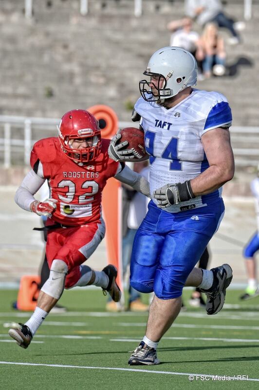 Maanantai-illan Vaahteraliiga-ottelu Helsinki Roostersin ja Vantaan TAFT:n välillä päättyi lopulta isäntien voittoon. Helpolla ei TAFT kuitenkaan sarjapisteitä hallitsevalle mestarille antanut. Vielä päätösneljänneksellä lähdettäessä TAFT johti 16–20, mutta Roosters taisteli itsensä voittoon lukemin 31–20 (16–6). Roosters ilmoitti iltapäivällä aloittavansa ottelun pelinrakentaja Henri Väänäsen johdolla, ja näin myös tapahtui. Aloitus oli Väänäselle karu: TAFT-puolustaja Joel Sisler pääsi vapaasti heti ensimmäisellä Roostersin yrityksellä iskemään Väänäsen kenttään. Vantaalaisten puolustus piti muutenkin Roostersin heittopelin kurissa. Hyökkäyksen linja, fullback Esa Vanhoja ja Jaycen Spears puolestaan onnistuivat viipaloimaan avauspuoliskolla toistuvasti TAFT:n puolustusta. Cole Webb johti TAFT:n hyökkäystä nyt ensimmäistä kertaa reilun kahden viikon yhteisharjoittelun jälkeen ja vantaalaiset hyökkäsivätkin ajoittain mallikkaasti. Heittopelissä Webbin suosikkikohde oli Cedric Johnson, joka esitteli muutamia akrobatianumeroita kiinniottojensa yhteydessä. Juoksupelissä TAFT sai kasaan jo puoliaikaan 34 jaardia – vain 4 jaardia vähemmän kuin aiemmissa otteluissa keskimäärin koko ottelussa. Webb sekä Andre Dahlman vastasivat pallon kuljettamisesta. Roosters avasi pistetilinsä Akseli Olinin kenttäpotkumaalilla ja tuokiota myöhemmin Spears irtosi 46-jaardiseen touchdowniin. Tällä kertaa Olinin potku epäonnistui, mutta Roosters oli repäissyt itsensä 9–0 -johtoon ja näytti menevän menojaan. TAFT:n kavennuksesta vastasi harvemmin pallon kanssa taituroinut pelaaja: 153-kiloinen linjapuolustaja. Vantaalaiset pääsivät käsiksi Väänäsen heittämään palloon, joka putosi korkealta suoraan Kolkan syliin. Kolkka otti pallon haltuunsa ja juoksi 15 jaardin matkaan maaliin. Andre Dahlmanin lisäpiste osui tolppaan, joten tilanne oli 9–6. Ennen puoliaikaa Spears teki vielä toisen touchdowninsa ja Olinin lisäpisteen myötä ottelu oli puoliajalla lukemissa 16–6. Kolmas neljännes oli TAFT:n, päätösneljännes Roostersin Toisen puoliajan aluksi TAFT riisti pallon Roostersilta Spearsin pudotettua juoksupelissä pallon. Hyökkäyksessä Webb onnistui väistelemään kimppuunsa päässeitä Roostersin linjamiehiä ja löytämään laitahyökkääjiään varsinkin laidoilta. Lopulta kotijoukkueen 15-jaardisten rangaistusten myötävaikutuksella TAFT pääsi maalilinjan tuntumaan, josta Webb tavoitti heitollaan maalialueelta Jani Luiron. Dahlmanin lisäpisteen jälkeen tilanteeksi kaventui 16–13. Roosters vaihtoi toisella puoliajalle pelinrakentajaksi Otso Flinkmanin, mutta TAFT:n puolustus onnistui pitämään punapaitaisen kotijoukkueen hyökkäysyrityset edelleen kurissa. Ja kun Webb oli saanut vantaalaisten hyökkäyksen rullaamaan, syntyi tulosta myös seuraavalla vuorolla. Tällä kertaa Webb löysi heitollaan Johnsonin ja TAFT siirtyi ottelussa ensimmäistä kertaa johtoon. Kun puolia viimeisen kerran vaihdettiin, tilanne oli vierasjoukkueen hyväksi 16–20. Tukimieskaksikko Joel Sisler – Jim Barry onnistui toisella puoliajalla jarruttamaan Roostersin juoksupeliä, mutta päätösneljänneksellä Spearsin ja hyökkäyslinjan yhteispeli tuotti Roostersille johto-osuman, jota Roosters tosin joutui yrittämään maalilinjan tuntumasta useammankin kerran. Spearsin touchdownin ja lisäpisteen jälkeen johtoasema vaihtui, ja peli oli 24–20. TAFT ei kuitenkaan luovuttanut. Webbin pitkä heitto tavoitti Johnsonin vasemmalta laidalta ja TAFT eteni iskuetäisyydelle. Vuoro kuitenkin päättyi rähmättyyn palloon. Ottelun lopullinen niitti syntyi vajaat kolme minuuttia ennen ajan päättymistä. TAFT otti riskin omalta 10 jaardin linjalla ja pelasi neljännen yrityksen tilanteessa heittopelin. Riski ei onnistunut, Roosters sai pallon ja hetkeä myöhemmin Flinkman heitti touchdownin Robin Drockilan käsiin. Olin viimeisteli lisäpisteestä loppulukemat 31–20. – Me olemme nuori joukkue. Pelasimme hyvin kaksi ja puoli neljännestä, mutta se ei riitä, TAFT:n päävalmentaja Stephen Stokes sanaili ottelun jälkeen. – Meillä on apina selässämme, mutta tällaisilla esityksillä saamme sen vielä pudotettua. Roostersin päävalmentaja Juha Hakala antoi TAFT:lle täyden tunnustuksen. – TAFT osoitti, että se kuuluu tähän sarjaan ihan niin kuin kaikki muutkin, Hakala aloitti. – Meillä oli tänään hankala, virheiden täyttämä päivä. Muun muassa tyhmiä rangaistuksia. Toisaalta voitimme tämän ottelun aloittamalla kolmannella pelinrakentajalla. Siitä täytyy olla tyytyväinen. Roostersin ottelut sinivalkoisia joukkueita vastaan jatkuvat jo perjantaina, jolloin Nelonen Pro :n TV-ottelussa Velodromille saapuu Tampere Saints. TAFT puolestaan pelaa seuraavaksi Seinäjoella, jossa vantaalaiset kohtaavat Crocodilesin. Viidennen peliviikon kolmannessa kamppailussa sunnuntaina Wasa Wa1ld Royals pelaa kauden ensimmäisen kotiottelunsa ja saa vastaansa Porvoo Butchersin. – Vierasottelut ovat meille hyviä tähän vaiheeseen kautta, Stokes sanoi viitaten TAFT:n vieraspelien putkeen. – Bussissa istuminen tekee joukkueesta entistä yhtenäisemmän. – Aloitamme valmistautumisen Saintsia vastaan heti huomenna, Hakala kertoi. – Lyhyt viikko, mutta meidän täytyy olla valmiita kovaan peliin, ja olla valmiita pelaamaan viisaasti koko ottelun ajan. Voiton myötä Roosters nousi tasapisteisiin Crocodilesin kanssa jakamaan Vaahteraliigan kärkisijaa. Kumpikin viimekauden finalisteista on aloittanut kauden kolmella voitolla. Vaahteraliiga, 4. peliviikko: MA 06.06.2016 | 18:30 | Velodromi, Helsinki Helsinki Roosters – Vantaan TAFT 31–20 (16–6) Tilastot Kierroksen muut ottelut: PE 03.06.2016 | 18:30 | Keskuskenttä, Porvoo: Porvoo Butchers – Seinäjoki Crocodiles 7–35 (0–14) Ennakko | Tilastot | Raportti LA 04.06.2016 | 16:00 | Yläkenttä, Turku: Anders Trojans Turku – Wasa Wa1ld Royals 26–21 (19–15)