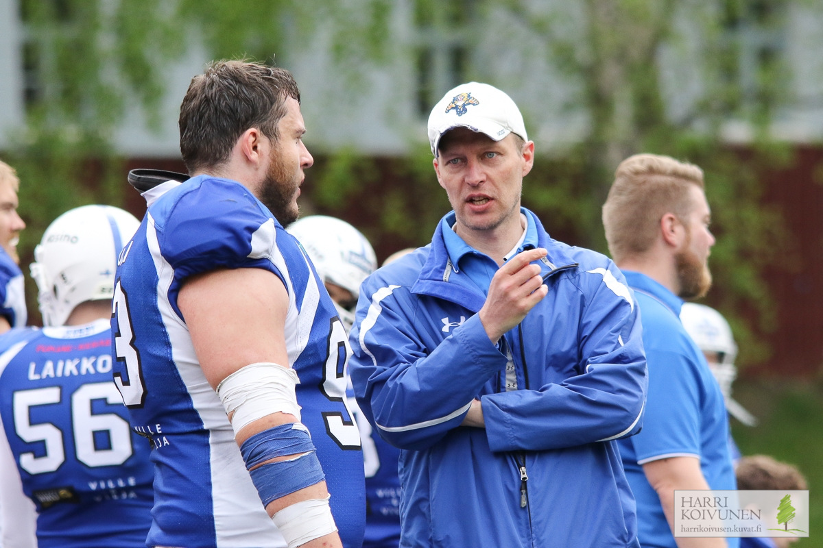 Saintsin hyökkäys on valmiina ottamaan askeleen eteenpäin Majander on saanut pelinrakentaja Dominic Bonan kanssa viimeiset kaksi viikkoa hioa Saints-hyökkäyksen pelikuvioita kuntoon. Trojansia vastaan Saints pystyi ajoittain liikuttamaan palloa monipuolisesti ja varsinkin Tommi Pinnan rooli nousi avausviikosta huomattavasti suuremmaksi. – QB Bona pääsee taas väliviikon jälkeen töihin ja hänen käsissään lepää paljon, Majander toteaa lyhyesti. Hakala nostaa esille erityisesti Saintsin heittopelin. – Pinta on iso kohde, ja pelasi hyvin Turkua vastaan, Hakala kertoo. – Olen itse ehtinyt valmentaa Eero Hiltusta juniori-aikoina ja tiedän, että hän on erittäin nopea laitahyökkääjä, kuten myös Henri Laine toisella puolella. Laine koppasi Trojansia vastaan viisi palloa ja eteni niillä 39 jaardia. Hiltunen puolestaan teki Bonan heitosta 98-jaardisen touchdownin. Pinta on silti Hakalan papereissa haaste numero 1. – Hänelle meidän täytyy löytää sopiva vastapeluri, Hakala kertoo. Olisiko sellainen mahdollisesti Santtu Äyräväinen? – Olet varsinainen visionääri! Hehän ovat pelanneet aiemminkin vastakkain, joten siitä saadaan jälleen hyvä taistelu. Äyräväinen on alkukaudesta ehtinyt keräämään kaksi pelinrakentajasäkitystä ja myös kaksi syötönkatkoa. Kahteen säkitykseen päässyt linjapuolustaja Ilari Nikku sekä kaksi syötönkatkoa napannut takamies Curtis Slater ovat myös perjantaina seuraamisen arvoisia puolustajia. Dominic Bona on kahden ottelun jälkeen Saintsin ahkerin juoksuetenijä. Perjantaina tamperelaiset saavat kokoonpanoon takaisin Dajon Newellin, joka ei pienen loukkaantumisen vuoksi pelannut Trojansia vastaan. Pallonmenetykset kiusasivat Saintsia edellisessä ottelussa ja huolellisuus on yksi avainasioista myös perjantaina. Majander nostaa lisäksi esille ottelun alun merkityksen: – Otteluiden alut ovat olleet meille vaikeita. Siitä me lähdemme että saamme koneet käyntiin ja itseluottamuksen nousuun heti, Saints-päävalmentaja päättää.