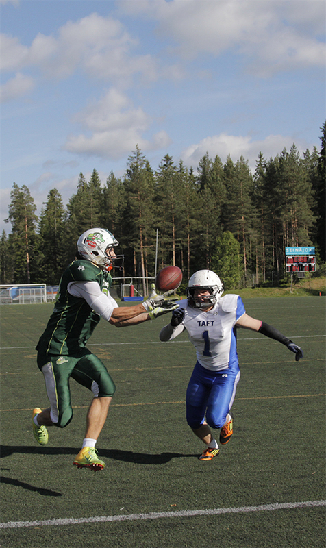 Justin Sottilaren heittopelille ei löydy pysäyttäjää: lauantaina 5 touchdown-heittoa Vaahteraliigan lauantain ottelussa kohtasivat Seinäjoki Crocodiles ja Vantaan TAFT. Kotijoukkue oli rautainen sekä puolustuksessa että erityisesti heittopelissä. Viimeisen vihellyksen soidessa Jouppilanvuoressa tilanne oli Crocodilesin hyväksi 42–0 (21–0). – Tämä oli niitä otteluita, joissa hyökkäys toimi ja puolustus toimi, Crocodilesin päävalmentaja Henri Kotanen tiivisti tuntemuksensa. TAFT:n päävalmentajan Stephen Stokesin ajatukset olivat luonnollisesti päinvastaiset. Maanantaina joukkue teki Roostersia vastaan 20 pistettä, mutta nyt kotijoukkue oli valmis tylsyttämään vantaalaisten syömähampaat. – Joukkue jäi matkan jälkeen bussiin, emme päässeet peliin kiinni ja pienet loukkaantumiset vaivasivat varsinkin linjapelaamisen osalta, Stokes harmitteli. Ottelun käsikirjoitus eteni Crocodilesin suunnitelman mukaan. Pelinrakentaja Justin Sottilare tuntui olevan koko ajan ajatuksen edellä TAFT:n puolustusta. Nopealla tahdilla, tutulla ripeällä rytmillä yhdysvaltalainen heitti palloa omille laitahyökkääjilleen ja pohjusti ensimmäisellä kahdella neljänneksellä kolme touchdownia. Timothy Thomas ja Andre Feuerherdt viimeistelivät lyhyillä kiinniotoillaan läheltä maalialuetta ja keskushyökkääjä Kevin Marshallia keskushyökkääjänä tuurannut Niko Lester karkasi lähes puolesta kentästä tekemään toisen neljänneksen puolivälissä yhden touchdownin. Spencer Cutlan ei lauantaina touchdownia tehnyt mutta potki illan aikana kaikki kuusi lisäpistettä haarukkaan. – Neljän laitahyökkääjän systeemi on sellainen, että joku jää siinä käytännössä aina vapaaksi. Justin osaa pyörittää sitä mestarillisesti ja löytää aina sen paikan, johon pallo kannattaa heittää. Puoliaikaan mennessä Crocodiles oli karannut 21–0 -johtoon. – Juuri ennen puoliaikaa saimme rakennettua hyvän hyökkäysvuoron, mutta jäimme jaardin päähän, kun aika loppui kesken, Stokes kertoi. – Ja sitten puoliajan jälkeen kaveri vei potkun pohjiin, mikä käänsi ottelun lopullisesti.