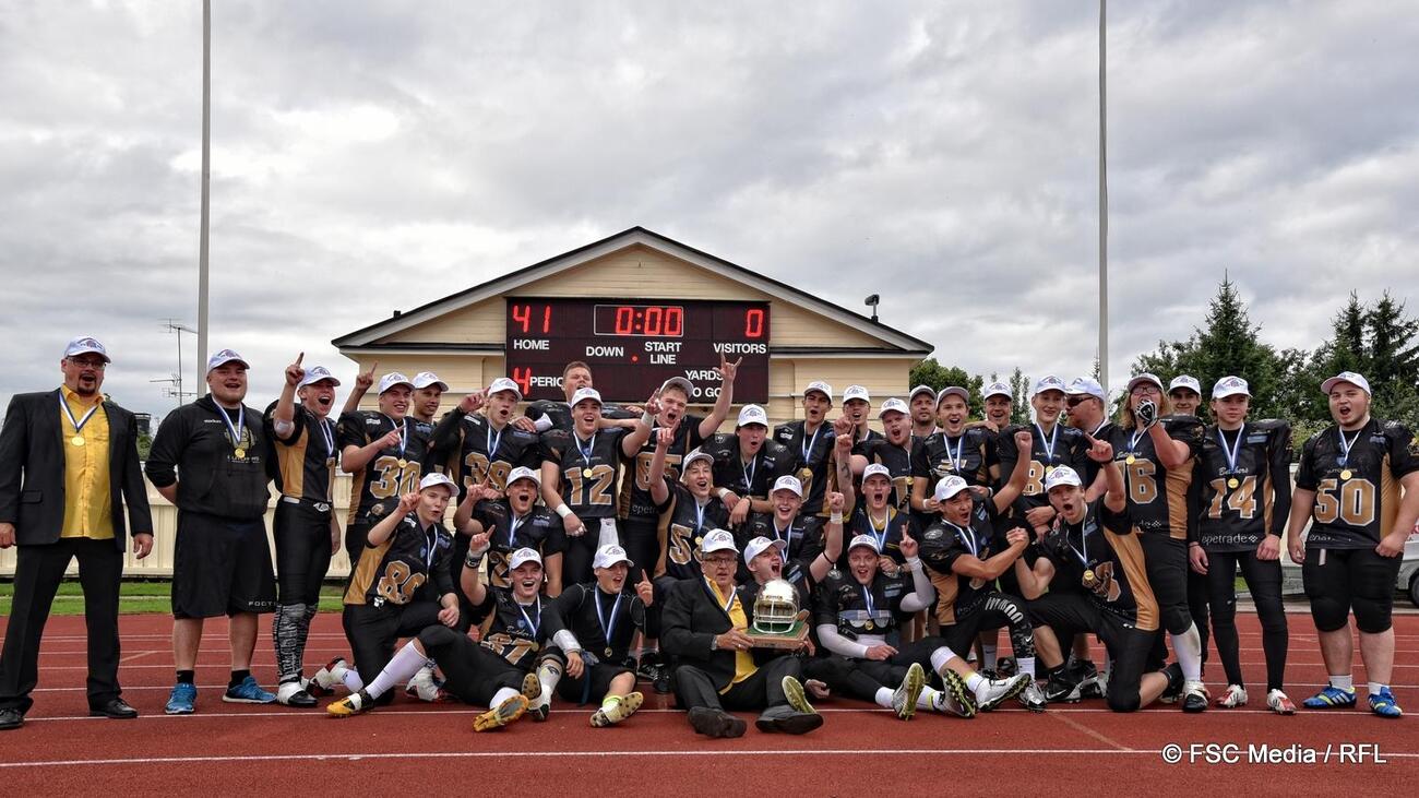 Butchersin vahvuus: tiivis puolustus Butchersin kausi oli kauttaaltaan vakuuttava, sillä porvoolaisjoukkue päästi viidessä ottelussa ainoastaan yhden touchdownin. Kauden tärkeimmässä ottelussa myös hyökkäys teki kauden korkeimman pistemääränsä. Marko Luoman valmennuksessa Butchers eteni mestaruuteen toisena kesänä peräkkäin, minkä lisäksi U19-mestareihin liittyi nyt joukko viime vuonna 17-vuotiaiden Suomen mestaruutta juhlineita pelaajia. Wolverines pelasi vielä vuosi sitten 7 vs 7 -sarjassa ja siirtyi nyt onnistuneesti 11 pelaajan sarjaan. Jatkuvuus Peetja Mannilan, Opi Olavuon ja Aki Rinteen valmentamassa ryhmässä on kuitenkin taattu, sillä hopeajoukkueesta ainoastaan muutama pelaaja kasvaa yli-ikäiseksi. Kolmanneksi sarjassa sijoittui Seinäjoki Crocodiles. 19-vuotiaiden "seiska-seiska" -sarjan Suomen mestaruudesta pelataan finaalissa maanantaina Velodromilla, jossa Helsinki Roosters kohtaa Vantaan TAFT:n kello 18 alkaen.