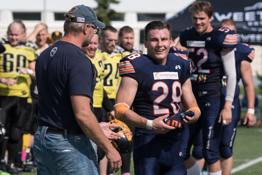 ![]() Juhani Kaskistoa hymyilyttä. Bearsilla on jäljellä enää yksi ottelu: Rautamalja, jonka Bears pelaa kotikentällään sunnuntaina 21. elokuuta. Kuva: Pekka Paljakka / UrheiluSuomi.com |