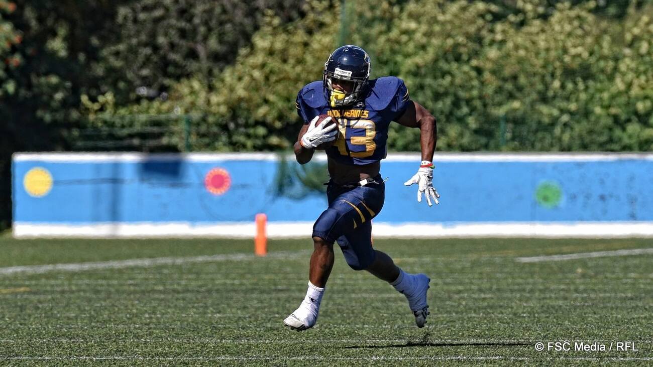 ![]() Wolverinesin Antonio Harris keräsi kentän suurimman taklaussaaliin (6,5 taklausta) ja otti lisäksi kaksi syötönkatkoa. Kuva: FSC Media / Riku Flink ![]() Jaguaarien keskushyökkääjä Joni Kähönen on kauden aikana ollut yksi I-divisioonan parhaimmista keskushyökkääjistä. Välierässä tuloksena oli hyvällä keskiarvolla 126 juostua jaardia. Kuva: FSC Media / Riku Flink |