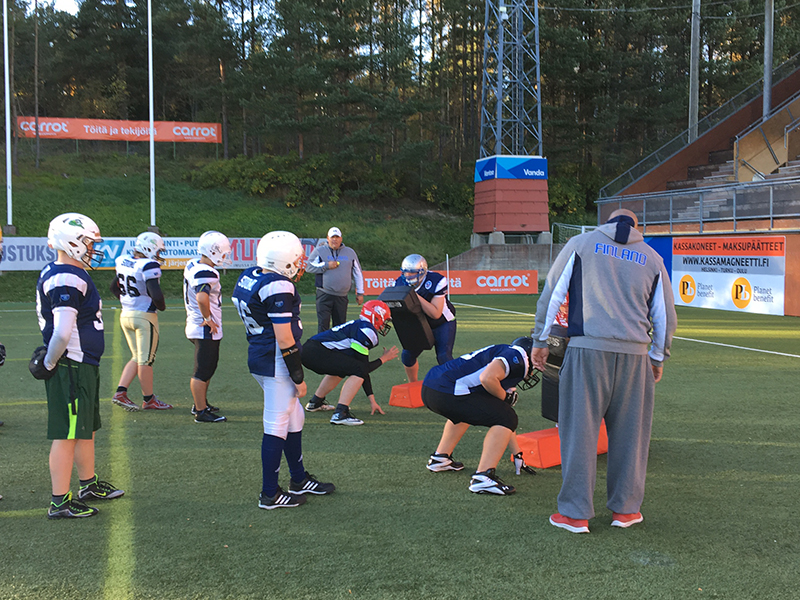 Isoa pelaamista isolla sydämelläTurnauspaikalla on juhlava nimi: Disney ESPN Wide World of Sports -alue, joka sijaitsee Floridan lämmössä Orlandossa. Suomen joukkueet kohtaavat muun muassa Kanadan, Arabi-Emiraatit, Meksikon. USA on myös mukana Orlandossa, mutta yhdysvaltalaiset joukkueet pelaavat oman national Pop Warner -turnauksen, jossa ratkaistaan USA:n mestaruus. Vastustajat ovat uusia ja eksoottisiakin, maa on uusi ja joukkuekaveritkin ovat uusia. Peli on tuttu, mutta jotakin uutta siinäkin on: – Pelit pelataan isolla kentällä 11 vastaa 11 -pelimuodolla, jota tämän ikäiset eivät vielä sarjapeleissä pelaa, Kurki kertoo. – Lisäksi mukana on myös potkupelit. Tämä on ihan täyttä jenkkifutista. Suomen joukkueet harjoittelivat ensimmäistä kertaa lokakuun alussa naisten ja miesten Suomi–Ruotsi -maaotteluiden yhteydessä Vantaalla. Seuraavan kerran Team Finland Blue Lions hioo pelikuvioitaan Seinäjoella marraskuun puolivälin jälkeen. – Pelipaikkakohtaisissa harjoituksissa olemme harjoitelleet kaikki yhdessä, ja valmennusryhmät ovat molemmissa joukkueissa samat. Mika Eloranta, Seppo Evwaraye ja Toni Uusitalo vastaavat hyökkäyksestä ja Timo Tuokko, Teppo Viljanen ja Joni Niskanen puolustuksesta. – Itse pelisuorittamisessa ydinkysymys liittyy pelin tasoeroihin. Toisin sanoen siihen, onko esimerkiksi 13-vuotiaissa pelipaikkakohtaisia eroja pelitaidoissa eri maiden pelaajien välillä ja jos on niin minkälaisia? Muun muassa Seinäjoella oli kovatasoinen 15-vuotiaiden joukkue tänä vuonna. Nyt he pääsevät kokemaan, minkätasoisia ovat muiden maiden samanikäiset pelaajat. Pop Warner -turnauksen suosio tuli Kurjen mukaan yllätyksenä. Kun ilmoittautuminen alkoi ja matkan hinta (2 500 euroa), ennakkoilmoittautuminen täyttyi välittömästi. Valmentajahakemuksia tuli yhteensä 25, joista matkaan lähtee seitsemän. – Mukaan lähtee muutamia kokonaisia perheitä. Valmennusryhmä kasattiin eri joukkueista siten, että saisimme mukaan mahdollisimman erilaisia persoonia, joilla on kokemusta lasten valmentamisesta. Siinä, missä monessa kodissa odotetaan mahdollisesti jo joulua, odotetaan ainakin noin 60 suomalaiskodissa joulukuun alkua jo ehkä enemmän kuin joulua. Silloin Team Finland Bluelions vie suomalaista jenkkifutisosaamista näytille maailman kentille. Ja tuo tuliaisiksi kokemuksia ja kontakteja ympäri maailman.