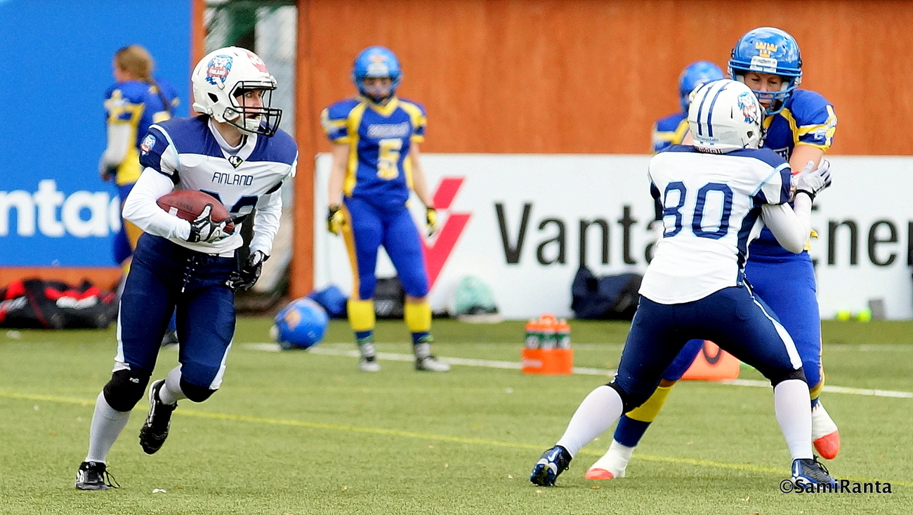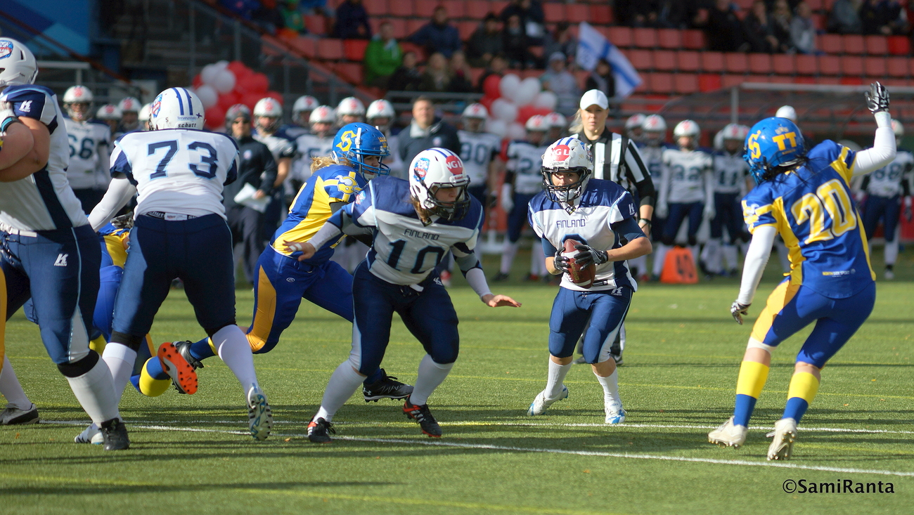 Naisten MM-kisat alkavat Kanadassa lauantaina, kun Suomi kohtaa Iso-Britannian Amerikkalaisen jalkapallon naisten MM-kisat käynnistyvät Kanadassa Langleyssa lauantaina. Kisojen avausottelussa kohtaavat kaksi Euroopan kärkimaata, kun hallitseva EM-kultamitalisti Suomi saa vastaansa Iso-Britannian. Euroopan kaksikon ja kisajärjestäjä Kanadan lisäksi MM-kullasta taistelevat hallitseva mestari Yhdysvallat sekä Australia ja Meksiko. Suomi kuuluu naisissa amerikkalaisen jalkapallon suurmaihin. EM-kullan lisäksi kaksista edellisistä MM-kisoista – vuonna 2010 ja 2013 – Suomi on saavuttanut pronssia. – Olemme pelanneet täydellä kontaktilla vuodesta 2008 asti eli olemme muihin Euroopan maihin verrattuna kokeneempia, päävalmentaja Mika Eloranta kuvaa Suomen vahvuuksia. – Meillä on jälleen kova porukka kasassa. Kokemusta Suomen joukkueesta edustavat erityisesti linjapelaajat Minttu Hurme ja Elina Seppälä, jotka ovat kuuluneet Suomen kokoonpanoon kaikissa pelatuissa maaotteluissa vajaan kymmenen vuoden aikana. Kaksikolle Iso-Britannia -peli uran 20. maaottelu. – Kaksissa edellisissä MM-kisoissa olemme hävinneet Kanadalle ratkaisevan ottelun ja jääneet finaalin ulkopuolelle, Eloranta kertoo. – Nyt tavoitteemme on päästä kohtaamaan jälleen Kanada ja edetä loppuotteluun. Kahden pronssin jälkeen ei tavoitteemme voi olla mikään muu. Tiiviissä aikataulussa käytävissä kisoissa jokainen ottelu on tärkeä. Mikäli Suomi voittaa avausottelussa Iso-Britannian, toteutuu Elorannan toive, ja seuraavassa ottelussa vastassa on Kanada. Mikäli myös Kanada kaatuu, etenee Suomi loppuotteluun. Vastaavasti mikäli Suomi häviää Iso-Britannialle, asettuu toisessa ottelussa vastaan lajin hallitseva maailmanmestari ja suurmaa Yhdysvallat. Suomi on kokenut turnausmaa ja Eloranta uskookin, että arvokisojen rutiini on yksi merkittävä etu Suomelle. Jorma Hytönen johti Suomen MM-pronssiin kotikisoissa 2013 ja nykyinen pelinrakentajavalmentaja Teemu Kuusisto EM-kultaan 2015. Eloranta on päävalmentajan roolissa nyt ensimmäisissä arvokisoissaan, mutta valmennuksen runko on tuttu jo vuosien takaa. Nykyinen päävalmentaja on itsekin ollut ringissä mukana jo vuosia. – Lisäksi pelityyli ja tapa on varsinkin puolustuksen osalta vanva tuttu. Hyökkäyksessä pelaamme itselleni ja koordinaattori Pete Salovallalle tuttua systeemiä, Eloranta kertoo.