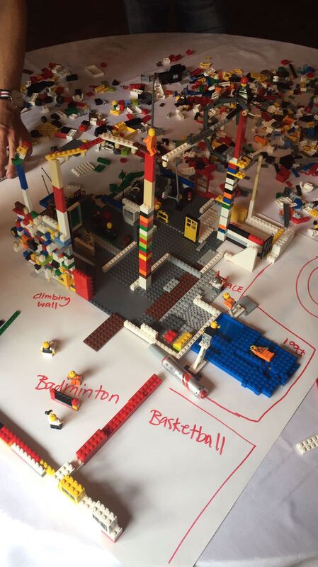 ![Nuoret pääsivät suunnittelemaan legoista tulevaisuuden urheilurakennuksia.]()