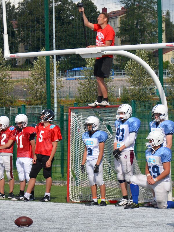 Kaksipäiväinen karsintaleiri järjestettiin Velodromilla osana valmistautumista Ruotsi-ottelua varten. Leiriläiset kävivät myös seuraamassa Vaahteramalja XXXIII:ää. U17 maajoukkuetta vuodesta 2008 päävalmentajan roolissa luotsannut Tero Virtanen: - Vuodessa on tapahtunut suurta kehitystä kyseisesä ikäluokassa seuratasolla. Osalla seuroista on jo valmiuksia fyysiseen pelaamiseen. Esimerkiksi Tampereelta leirillä oli viime vuonna yksi pelaaja ja tänä vuonna peräti kaksitoista pelaajaa. Nyt on siinä mielessä hyvä tilanne, että valinnat voi tehdä laajasta joukosta. Leirillä oli menemisen meininki ja iso leiririnki takasi myös riittävästi lepoa tiimi-harjoitelussa ja näin toistojen laatu säilyi tasokkaana. Valmentajistossa on muutamia muutoksia. Teemu Paukkula pitää taukoa valmentamisesta ja keskushyökkääjiä U17 maajoukkueessa luotsaa juurilleen palaava Rami Lilja. U17 pelinrakentajavalmennus tulee olemaan tasokkaissa käsissä, kun Petrus Penkki tekee debyyttinsä ikäkausivalmentajana. Muuten U17 maajoukkueen staff on sama kuin edellisinä vuosina. Vaahteramalja otti osansa valmentajistosta ja tämän vuoksi leirillä laitahyökkääjävalmennusta hoiti ansiokkaasti Ville Palikainen. Lauantain aamuharjoituksissa apuna olivat myös miesten maajoukkueen Jason Thomas, Kari Titola sekä Tuomas Heikkinen. Sunnuntaina takakenttää apuvalmensi Miikka Lievonen. U17 maajoukkueen uusi joukkueenjohtaja Jarmo Lahti oli tyytyväinen aloitukseen: - Oli mukava katsella innostuneita pelaajia, jotka pääsivät harjoittelemaan ideaalisissa olosuhteissa. Seurassa ei välttämättä saa jokaisessa harjoituksessa pelipaikkakohtaista valmennusta ja tämän lisäksi kilpailutilanne oli varmasti osalle pelaajista uusi kokemus. Joukkue kaipaa vielä fysioterapeuttia mukaan ryhmäänsä, sillä Julius Luomajoki ei ole mukana enää työkiireittensä vuoksi. Kiinnostuneet ottakaa yhteys välittömästi: U17 maajoukkueen jatko-ohjelma: