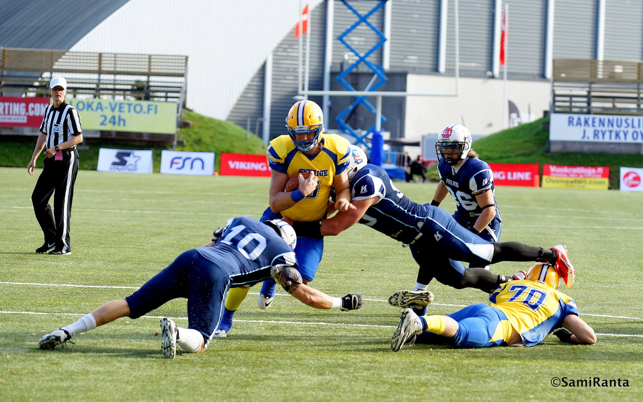Ruotsin miesten maajoukkueen päävalmentaja Anders Ehrenreich johdattaa lauantain Suomi-otteluun nuoren joukkueen. 2010-luvulla Suomi ja Ruotsi ovat kohdanneet miesten maaottelussa kahdeksan kertaa. Näistä Suomi on voittanut viisi. Viimeisestä neljästä ottelusta kolme on päättynyt Suomen voittoon. Vuosi sitten Suomi voitti 14 pisteellä lukemin 31–17, mutta useasti viimeisistä peleistä on voitosta pelattu aivan viimeisille sekunneille asti. Vuosikymmenen aikana pelatuista otteluissa puolet on ratkennut alle kuuden pisteen erolla. Kokonaispiste-ero otteluissa on kallellaan Ruotsille viidellä pisteellä, 160–165. – Pelissä on aina paljon latausta, kun pelataan Suomea vastaan. Lajista riippumatta, arvioi Ruotsin päävalmentaja Anders Ehrenreich Ruotsin lajiliiton SAFF:n uutisessa. – Meillä on myös pitkät perinteet pelaajaliikenteestä. Moni ruotsalainen pelaa Suomessa ja vuosien varrella täällä on pelannut paljon lahjakkaita suomalaisia. Ruotsin joukkueessa nähdään tänä vuonna muun muassa Helsinki Roostersissa pelannut puolustuksen linjamies, Superserienin parhaimmaksi puolustajaksi useasti valittu Olof Flemström sekä Wasa Roaylsissa jo kahtena kautena pelanneet Nicholas Peterson ja Eric Blomgren. Suomen joukkueen pelaajista Ruotsissa pelasi menneenä kautena pelinrakentaja Otso Flinkman, joka johti vuosi sitten Suomen peliä voitokkaasti Ruotsia vastaan. Lisäksi muun muassa vuosi sitten kolme maalia Ruotsia vastaan tehnyt keskushyökkääjä Veikka Lehtonen on urallaan pelannut vuosia Örebrossa. Sekä Suomen että Ruotsin tavoitteissa siintävät jo tulevat arvokisat, joten tulevassa ottelussa valmennuksen tavoitteena on erityisesti kerätä tietoa omasta joukkueestaan – ei niinkään vastustajasta. Ehrenreich kiittelee valmennusyhteistyötä Suomen päävalmentaja Tuomas Heikkisen kanssa, mutta ystävällisyys ei hänen mukaansa ole hallitseva termi enää pelitilanteessa. Vuosi sitten Suomen pelissä korostui erityisesti voimakas juoksu. Tämä aiheuttaa selvästi kunnioittavaa värinää päävalmentajan muistikammiossa edelleen. – Suomi pelaa aina kovaa – se on suomalaisten DNA:ssa. He keskittyvät enemmän voimaan ja valtaan kuin hienotunteisuuteen, mikä tullaan jälleen varmasti huomaamaan. Lähtökohtaisesti tämä on kuitenkin ystävyysottelu, ja valmentajat ovatkin jakaneet etukäteen tietoja, jotta peliin voi lähteä valmistautuneen eikä tarvitse lähteä pelaamaan ”sokeana”. Ruotsin maajoukkue on liikkeellä nuorella pelaajistolla ja muun muassa kokeneen pelinrakentajat Anders Herdmodsson ja Philip Juhlin ovat molemmat rivistä pois. Ehrenreichin mukaan muutamaa pelaajaa lukuun ottamatta Ruotsi olisi voinut pelata tällä joukkueella myös nuorten EM-kisoissa heinäkuussa. Nuorten lisäksi joukkueessa on mukana myös muutamia I-divisioonassa pelanneita pelaajia, kuten toinen pelinrakentajista, STU Northside Bullsia seuratasolla edustava Ludvig Persson. Toisaalta Kruunupaitojen takakentällä nähdään myös muun muassa kokenut Philip Minja sekä Micky Kyein ja Sebastien Sagnen joukkuekaverina GFL:n Dresden Monarchsissa pelannut William James. Ehrenreichin ja Ruotsin syysprojekti ei ole pelkkä Suomi-ottelu, vaan ruotsalaiset pelaavat uudelleen jo viikon päästä lauantaina, jolloin Göteborgissa on vastassa Iso-Britannia. Todennäköisesti Ruotsin peli on heittopainotteista spread-muodostelmasta, mitä nähtiin jo vuosi sitten. Tätä tukee myös kokoonpanon painotus: keskushyökkääjiä listassa on vain kolme, kun laitahyökkääjiä on Jakob Dahren ja johdolla mukana kahdeksan.