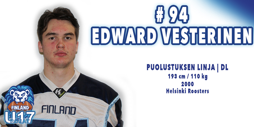 Edward Vesterinen sai runsaasti vastuuta myös Helsinki Roostersin Vaahteraliiga-joukkueessa. Suomen lupaavimpiin pelaajiin kuuluva Vesterinen kirjautti ensimmäisellä pääsarjakaudellaan hyvät lukemat: 23 taklausta, 7 taklausta aloituslinjan takana, 3,5 säkitystä ja 3 peitettyä rähmäystä.