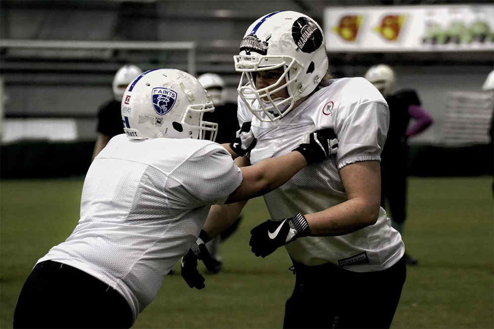 Tampereella on tekemisen meininki kentällä, salilla ja taustallaTampereella on pelattu jenkkifutista naisten SM-tasolla edellisen kerran vuonna 2015. Vuosi oli tuolloin haastava tappioiden seuratessa toisiaan. Jo reilu vuosi sitten käynnistynyt renessanssi Saintsin toiminnassa on kuitenkin tuottanut erinomaisia tuloksia, mistä osoituksena oli I-divisioonan voitto kauden 2017 päätteeksi. Syksyllä joukkue piti palaverin ja päätti yksimielisesti ottaa haasteen vastaan ja nousta jälleen Vaahteraliigaan. – Tampere on iso kaupunki, meillä 60 pelaajaa ringissä ja taustat sekä valmennus kunnossa, toteaa Saintsin päävalmentaja Jussi Honkonen. – Pelillistä kehitystämme ei olisi enää tukenut pelaaminen I-divisioonassa, joten haasteista huolimatta päätettiin nousta. Mitä nämä haasteet ovat? – Muilla joukkueilla on paljon kokemusta. Pelinopeus ja pelitaidollinen osaaminen. Asenne on paras vastavoima haasteille ja toiminnasta päätellen Saintsissa ei ole jääty hämmästelemään nousun tuomia uusia tilanteita. Honkosen johtamassa ryhmässä on yhteensä 12 valmentajaa, joukkuelääkäri, kaksi huoltajaa ja taustalla toimii 15 henkilön johtoryhmä. Uusia tuulia valmennukseen tuo maajoukkueen puolustuksen koordinaattori Toni Luomajoki, joka on jo ottanut vastuulleen Pyhimysten puolustusvoimat Panu Hämäläisen siirtyessä ”apupäävalmentajaksi”. – Meillä on tosiaan jo hyvä määrä pelaajasopimuksia kasassa, mutta edelleen neuvottelemme uusien pelaajien kanssa – myös ulkomaalaisvahvistusten kanssa, kertoo Honkonen. – Periaatteeni on kuitenkin se, että uuden pelaajan pitää tuoda joukkueeseen jotain sellaista, jota meillä ei jo valmiiksi ole. Eli runko on edelleen meidän omat pelaajat. Laaja pelaajamateriaali mahdollistaa sen, että Saints on ilmoittanut joukkueen mukaan myös II-divisioonaan, jossa Honkosen tiedon mukaan on muitakin joukkueita jo mukana. Ensimmäinen täyden kontaktin leiri Tampereella on jo pidetty. Suuri painopistealue on päävalmentajan mukaan nyt kuitenkin fysiikkaharjoittelussa. – Meillä on viikottain 2-3 kertaa lajiharjoittelua ja 2-3 kertaa fysiikkaharjoittelua. Fysiikkavalmennuksen rooli ja määrä on iso, mistä kiitos kuuluu Jarkko Wellingille ja kuntokeskus Poltteelle. Osa pelaajistamme on käynyt valmennuksessa nyt kolme kuukautta ja tulokset näkyivät heti ensimmäisellä leirillä. Vaikuttaa siltä, että Saints hakee merkittävää jalansijaa heti ensimmäisellä tulokaskaudella Naisten Vaahteraliigan sijoituksissa. Mikä on tamperelaisten tavoite? – Kyllä meidän tavoite on olla välieräjoukkue, Honkonen päättää.