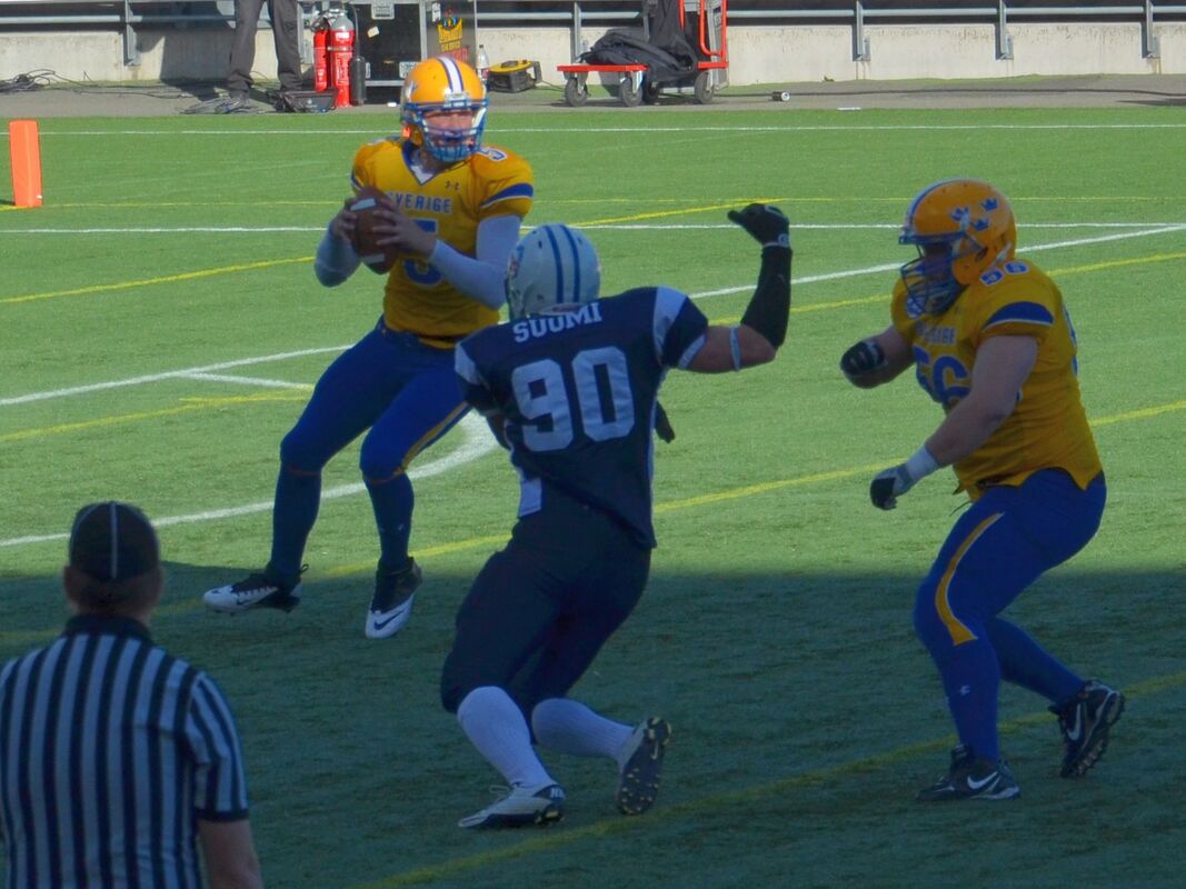 Suomen miehet taipuivat 3-20. Suomen miesten maajoukkue joutui taipumaan ottelussa, joka tasaisen alun jälkeen kääntyi Ruotsille. Vierasjoukkue voitti ottelun 20-3 (7-3). Suomen hyökkäys ei lähtenyt missään vaiheessa täysillä käyntiin, ja eteni koko ottelussa vain 113 jaardia. Suomella oli mahdollisuutensa ottelun ensimmäisellä neljänneksellä kasvattaa johtoaan, mutta Akseli Olinin kolmesta pitkästä potkumaaliyrityksestä onnistui vain yksi. - Jos olisimme alussa käyttäneet mahdollisuutemme, niin olisimme taistelleet voitosta loppuun asti, päävalmentaja Tuomas Heikkinen sanoi. - Hyökkäystä emme saaneet aukeamaan. Se oli nihkeätä alusta asti. Ottelun edetessä Ruotsin pelinrakentaja Anders Hermadsson otti pelin haltuunsa. Isokokoinen (196 cm / 110 kg) pelinrakentaja juoksi itse tärkeitä jaardeja joukkueelleen ja piti pelejä käynnissä hyvällä liikkeellään. Koko ottelussa hän juoksi 14 yrityksellä 73 jaardia ja heitti 115 jaardia ja kolme touchdownia. Hermodsson palkittiin ottelun parhaana pelaajana. - Hän on lahjakas urheilija, ja hänellä on iso rooli Ruotsin joukkueessa, Suomen parhaana pelaajana palkittu tukimies Joonas Raatikainen totesi. Ruotsin päävalmentaja Håkan Eriksson kehui puolustuksensa panosta. - Alussa jouduimme pallonmenetysten jälkeen puolustamaan lyhyttä kenttää. Puolustuksemme pelasi hyvin ja pakotti Suomen potkumaaliyrityksiin. Paitsion takia peruttu onnistunut potkumaali jonka uusintayritys epäonnistui toi energiaa meille. Suomen ykkösetenijä oli keskushyökkääjä Henri Jussila 49 jaardillaan. Pelinrakentaja Miro Kadmiry heitti 15 kertaa, joista onnistui seitsemän. Heittojaardeja kertyi 59. Heikkinen oli ottelun jälkeen pettynyt. - Ruotsi oli selkeästi parempi. Viime vuoden 35 tehtyä pistettä muuttui kolmeksi. Nyt on peiliin katsomisen paikka. Teimme valmistautumiseen enemmän töitä kuin koskaan minun aikanani, pitää tutkia menikö se ylivalmistautumisen puolelle, Heikkinen puntaroi. Heikkinen nosti joukkueen nuoremman kaartin onnistujiksi. - Etenkin puolustuksen linjassa meillä on nousemassa seuraavia kovia nimiä. Joonas (Raatikainen) paikkasi loukkaantuneen Efe Evwarayen hyvin. Voittonsa myötä Ruotsi siirtyi otteluvoittojen määrässä Suomen ohi. 17 kohtaamisesta yhdeksän on päättynyt Ruotsin voittoon. Ottelua seurasi Helsingin Sonera Stadiumilla 1 693 katsojaa. Ottelun tilastot: |