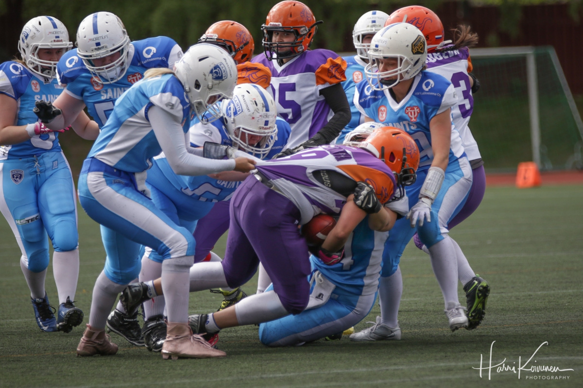 Saints pyrkii pysäyttämään Daria Briukhovetskayan. Naisten Vaahteraliigan runkosarjan jälkimmäinen puolisko pyörähtää käyntiin lauantaina kahden ottelun saattelemana. Pyynikillä kello 16 alkavassa taistossa Tampere Saints hakee revanssia avauskierroksella kärsitylle tappiolleen Valkyriesin vieraana. Kahta tuntia myöhemmin Helsingissä mitellään pääkaupungin valtiudesta, kun sarjakakkonen Roosters pyrkii kuromaan vierailija Wolverinesin etumatkan kiinni. Ei mitään hokkuspokkustaLauantaina Velodromilla nähdään laatuviihdettä, kun Roosters ja Wolverines ottavat toista kertaa tällä kaudella yhteen. Sarjan ottelut ovat toistaiseksi pysyneet aika tasaisina, ja loppukauden peleillä on vielä vaikutusta playoff-kuvioihin. Kauden ensikohtaamisessa Brahen kentällä Wolverines meni ohi toisella puoliajalla. Roostersin päävalmentaja Heli Harjanne haluaa välttää tämän lauantain ottelussa. – Viimeksi hävityn ottelun jälkeen tietysti revanssihengessä valmistaudutaan. Sarja kokonaisuudessaan on tasainen ja kaikki pelaamamme ottelut ovat olleet tiukkoja ja mielenkiintoisia. Kaikki runkosarjan loput pelit lähdetään voittamaan hyvällä valmistautumisella. Kausi tulee näyttämään, mihin se riittää. Wolverines haki viime viikonloppuna kauden suurinumeroisimman voiton Tampereelta. Päävalmentaja Pekka Lamminsalo haluaa kuitenkin pitää joukkueensa jalat maassa kauden edetessä. – Kausi on alkanut hyvin, mutta meillä on vielä paljon parannettavaa. Luotamme valmistautumisen prosessiimme, eikä lauantain peliin valmistautuminen tule poikkeamaan erityisen paljon aiemmasta. Pyrimme kehittymään joka treeneissä ja fokus on etenkin perustekemisen hiomisessa. Joukkueiden ensimmäisen kohtaamisen jälkeen Lamminsalo harmitteli Wolverines-hyökkäyksen haparoivaa alkua, eikä halua sen toistuvan Velodromilla. – Viime kerralla emme aloittaneet peliä vahvasti. Annoimme pallon aivan liian monta kertaa puolustukselle. Tärkeintä lauantaina on suojella palloa paremmin, jakaa palloa laajasti kaikille pelaajillemme ja pelata rennon konemaisesti läpi koko pelin. Brahen kentällä puolustus, Anne Rasilahden voimin, vastasi Roostersin ainoasta pistesuorituksesta. Wolverines onnistui kuitenkin tekemään voittoon tarvittavat pisteet piristyneen toisen puoliajan esityksen ansiosta. Pysäyttääkseen tällä kertaa vastustajan hyökkäyksen on Roostersin säilytettävä iskukykynsä ottelun loppuun saakka. – Pelin loppuun asti pitää olla terävänä ja pystyä pelaamaan omien vastuiden kautta. Linjapelin onnistuminen on avain onnistumiseen juoksupuolustamisessa ja takakentän peitot sekä vastaparit heittopuolustamisessa, listaa Harjanne. Päästäkseen kotiottelussa vastustajan maalialueelle Teemu Kuusisto ei kaipaa taikatemppuja kukkojen hyökkäykseltä. Hyvin hoidettu oma osuus jokaiselta pelaajalta riittää kokenutta puolustustakin vastaan. – Samoilla avaimilla lähdetään liikkeelle, kuin viime kerralla. Perussuorittaminen pitää olla hyvää, millään hokkuspokkus-tempuilla ei hyviä ja kokeneita puolustuksia avata. Vaikka jotain sellaista, mitä tällä kaudelle ei ole vielä meiltä nähty onkin mukana, niin ei toki mitään sellaista, mitä Wolverines-puolustus ei olisi ennen nähnyt. – Saimme edellisessä ottelussa kyllä liikutettua palloa, vaikka maalialueelle asti ei päästykään. Kun blokkityöskentelymme on parantunut kauden aikana, uskon vakaasti, että maalialuekin löytyy, toteaa Roosters-hyökkäystä koordinoiva Kuusisto luottavaisena. Kahdessa edellisessä ottelussa Roostersin hyökkäys on jyrännyt vakaasti maata pitkin kohti vastustajien maalialuetta. Sen pysäyttäminen on Lamminsalolla ensimmäisenä Wolverines-puolustuksen tehtävälistalla. – Roosters-hyökkäys on edennyt viimeisessä kahdessa pelissä keskimäärin 300 jaardia peliä kohden. On sanomattakin selvää, että meidän on kyettävä minimoimaan juoksupelien tehokkuus. Tämä vaatii varmaa taklaamista, hyviä kulmia pursuitissa ja kurinalaista oman vastuun pelaamista.