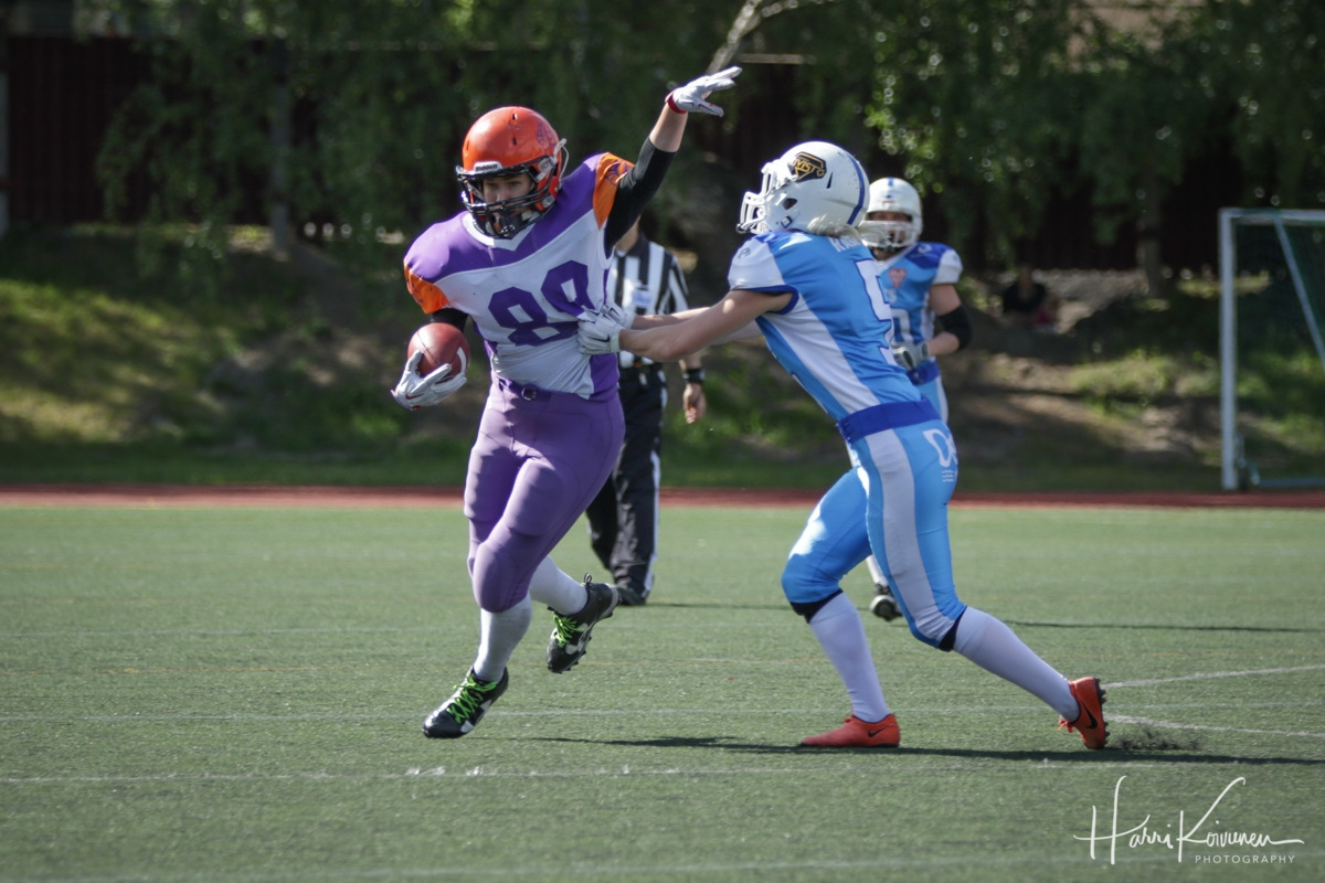 Venäläishyökkääjä takoi 36 pistettä viikonloppuna. Pietari Valkyriesia edustava Briukhovetskaya on valittu Naisten Vaahteraliigan neljännen kierroksen arvokkaimmaksi pelaajaksi. Toista kertaa kuluvalla kaudella MVP:ksi valittu hyökkääjä johdatti huimien tehojensa voimin Valkyriesin kauden toiseen voittoon Saintsista luvuin 50–23. Voittonsa turvin pietarilaiset nousivat tasapisteisiin Helsinki Roostersin kanssa, tiivistäen taistoa kotiedusta pudotuspeleihin. Pääosin juoksulla, mutta myös heitolla, Pyynikillä palloa kantanut Briukhovetskayan kokonaisjaardimäärä lauantain ottelussa oli 225. Viisi kertaa maalinteossa onnistuneen Valkyriesin numero 89 tilastoi näiden lisäksi kuusi lisäpistettä nimiinsä – kokonaispistemäärä siis 36. Vaikeasti pideltävä ja nopea Briukohovetskaya on viimeistellyt valkyyrien sesongin seitsemästätoista touchdownista peräti neljätoista. Pitkälti option-peliin luottavat venäläiset ovat luoneet tuhoisan parivaljakon Briukhovetskayan ja pelinrakentaja Elena Proskurikovasta, jonka pysäyttäminen on tuottanut vaikeuksia jokaiselle Naisten Vaahteraliigan joukkueelle. Kauden MVP-valinnat:Viikko 1: Sanni Seppälä, Wolverines Viikko 2: Daria Briukhovetskaya, Valkyries Viikko 3: Tytti Kuusinen, Wolverines Viikko 4: Daria Briukhovetskaya, Valkyries |