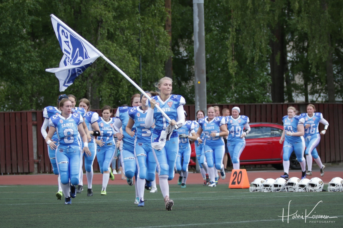 Saintsin kausi päätökseenTampere Saintsin Naisten Vaahteraliigakausi 2018 tulee päätökseen lauantaina, kun joukkue matkustaa Brahen kentälle runkosarjavoittaja Wolverinesin vieraaksi. Sarjanousijan kausi ei tuloksellisesti ole sujunut mallikkaasti, mutta joukkue on tällä kaudella ihastuttanut monet periksiantamattomuudellaan, viihdyttävyydellään ja yhtenäisyydellään. Laajalla 66 pelaajan rosterilla kauteen lähteneet sini-valkopaitaiset asettivat itselleen tavoitteeksi välieräpaikan, mutta tuo jäi tällä kaudella vielä haaveeksi. Kelataanpa aikanauhaa vajaa pari kuukautta taaksepäin. Haastajana sarjaan lähteneen Saintsin kausi potkaistiin ilmoille kotiottelulla Pyynikillä Valkyriesia vastaan, josta tuloksena oli kirvelevä loppuhetkien tappio. Sarjanousija osoitti tuolloin, että se kykenee haastamaan tässä sarjassa kenet hyvänsä tasavertaiseen otteluun – olihan vastassa edelliskauden pronssijoukkue. Päävalmentaja Jussi Honkonen kommentoi ottelua kesäkuussa tähän tapaan: – Kauden aikana kokemuksemme kasvaa ja pystymme jatkossa minimoimaan tämän kaltaiset tapahtumat. Seuraavalla kierroksella vastus koveni entisestään, kun Tampereelle vieraaksi saapui edelliskauden hopeajoukkue Roosters. Saints kykeni tuossa ottelussa tiiviin puolustustyöskentelyn avustuksella pitämään vierailijat pois pahanteosta, mutta joutuivat lämpimässä kesäpäivässä lopulta tunnustamaan helsinkiläiset paremmikseen. Tamperelaiset aiheuttivat tuossa ottelussa vierailijoille sydämentykytyksiä siirtymällä kokonaisuudessaan upean kauden pelanneen Suvi Mikkosen (kuusi touchdownia tällä kaudella) maalin turvin karkumatkalle kolmannen neljänneksen alkuun Emilia Hartikaisen (seitsemän alustettua touchdownia ennen lauantain peliin lähdettäessä) upean alustuksen päätteeksi. Tahtojen taistelua Honkonen kommentoi kesäkuun puolessavälissä sanoin: – Vaikka pääsimme toisen puoliajan unelma-alun jälkeen hetkeksi johtoon, vastustajan vankka kokemus näkyi ja sen avulla he lopulta väänsivät ottelun voiton itselleen. Koitti juhannustauko. Saints sai hioa omia kuvioitaan rauhassa – joukkue oli edelleen mukana pudotuspelijunassa ja seuraavalla kierroksella vastaan asettuisi sarjan hallitseva mestari Wolverines. Helsinkiläiset löivät luun kurkkuun heti ottelun alussa, eikä kapealla rosterilla otteluun lähteneet isännät pystyneet tuohon vastaamaan. Loppulukemat 7–58 taululle takoneet vieraat osoittivat mahtinsa, mutta tuosta ottelusta koko tamperelaisjoukkue ansaitsee hatun noston: yksikään pelaaja ei luovuttanut missään vaiheessa. Saints-puolustus urakoi, taklasi, löi palloa maahan (8 kertaa) ja koko joukkue kannusti toinen toisiaan. Kauden viimeiseen (nimelliseen vieraspeliin) kotiotteluunsa heinäkuun 7. päivänä Pyynikille saapui toistamiseen Valkyries Pietarista. Tampereella nähtiinkin todellinen maali-ilottelu. Kentän kuningatar oli Valkyries keskushyökkääjä Daria Briukhovetskaya, joka järisytti kaikkia tilastoja iskemällä peräti viisi touchdownia. Vaikka viihdyttävä kamppailu päättyi tamperelaisten tappioon, saatiin otteluun kuitenkin onnellinen loppu. Palkintojenjaon yhteydessä nähtiin myös liikuttava ja tunteikas hetki, kun pelin ”neljäntenä palkintona” apuvalmentaja Topias Räty polvistui Emilia Hartikaisen eteen. Viime viikonloppuna Saints pelasi niin sanotusti veitsi kurkulla pudotuspelihaaveiden suhteen. Koska runkosarjapelit muiden joukkueiden osalta olivat menneet niin ristiin, oli tamperelaisilla vielä teoreettiset saumat saavuttaa pudotuspelijuna kahdella voitollaan. Roostersin vieraaksi matkanneet pyhimykset osoittivatkin kaudelta tuttua taisteluilmettään ja pitivät kotijoukkueen niin fyysisesti kuin henkisestikin helteessä eivätkä antaneet mitään ilmaiseksi. Joukkue väänsi ja sai tylsytettyä pahimman terän pois helsinkiläisten hyökkäyksestä, mutta vieläkään se ei voittoon asti riittänyt. Loppulukemat 16–8 tiesivät pudotuspelihaaveiden kariutumista. Nyt tulevana lauantaina, kauden viimeiselle kierrokselle, Saints matkustaa runkosarjavoiton jo varmistaneen Wolverinesin vieraaksi. Peli on sinällään panokseton, mutta takuuvarmasti tamperelaisvieraat halaavat päättää kautensa voittoon. Taistelu-ilmentymä ja halu osoittaa kaikille ovat varmasti ne päällimmäiset asiat, jotka tulevat kuvastumaan Saintsin pelistä Brahen kentällä. Päävalmentaja Jussi Honkonen ja koko laaja apuvalmennusryhmä ovat tehneet jälleen upeaa työtä joukkueen kanssa. Iso kiitos kuuluu myös pelaajistolle, jotka jaksavat viikosta toiseen taistella täysillä pelistä ja harjoituksesta toiseen rakastamansa lajin parissa. Mikäli kehitystyö jatkuu samaan tapaan, varmaa on, että tulevaisuudessa Saintsin naiset tulevat kamppailemaan vain ja ainoastaan sarjan kirkkaimmista mitaleista. LA 28.07.2018 | 18:00 | Brahen kenttä, Helsinki: Wolverines – Saints |