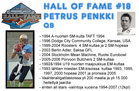 Texasin Austinissa nykyisin asuva Penkki vierailee Suomessa tammi-helmikuussa 2019. Penkki polkaisee käyntiin pelinrakentajien monivuotisen koulutuksen, joka käynnistyy su 20.1. Espoon Solvallan Urheiluopistolla ja viikkoa myöhemmin la 26.1. Seinäjoen monitoimihallilla. Petrus Penkki osallistuu myös Pajulahdessa su 3.2. pidettävään 1-tason Air-valmentajakurssiin kouluttajana. Petrus Penkki pelasi Suomessa, Ruotsissa, Italiassa ja Saksassa neljäntoista vuoden ajan huipputasolla. Hänen ensimmäinen mentorinsa oli NFL:ssä pitkän uran tehnyt Ken Meyer, joka tuli Suomeen 1990-luvun alussa maajoukkuevalmentajaksi. Hän vaikutti suomalaisen hyökkäyspelaamisen kehittymiseen enemmän kuin kukaan muu amerikkalaisvalmentaja ja tästä Petrus Penkki ammensi usean vuoden ajan. Peliuran jälkeen hän toimi aktiivisesti SAJL pelinrakentaja-akatemian sekä maajoukkueiden valmentajana. Useamman vuoden USA:ssa asunut Penkki muutti muutama vuosi sitten Floridasta Texasiin. Nykyisin hän on yksi Austinin suosituimpia yksityisiä pelinrakentajavalmentajia. High school -ikäisiä ja myös college-pelaajia on riittänyt Petrus Penkin yksityisvalmennuksessa. Yksi suojatti on jo päässyt pelaavaan rooliin San Antonion Trinity Collegessa. Petrus on hakenut lisäoppia mm. University of Texasin personal trainer opinnoista. Pelinrakentajan valmentaminen on kokonaisvaltaista työtä. Eurooppalaisena ja ns. boxin ulkopuolelta tulevana hänellä on tuoreita ajatuksia pelaajien kehittämisestä. Oman peliuransa aikana hän erottautui muista nimenomaan ahkerana ja analysoivana urheilijana. Uran aikana saatua tietotaitoa hän on päivittänyt mm. erilaisilla QB-leireillä USA:ssa. Amerikkalaisen jalkapallon live-seurantaa hän harrastaa erityisesti lähiseutujen high schoolien otteluissa. Kilpailu on valtaisaa. High schoolin freshman luokalla voi olla jopa yhdeksänkin pelinrakentajaa kilpailemassa peliajasta. Silloin pienetkin parannukset mekaniikoissa alkavat tuottamaan tulosta. Suomen leireille hän toivoo innostunutta osallistujakaartia. Texasissa hän tekee töitä usein pelinrakentajan ja hänen isänsä kanssa. Petrus pystyy valmentamaan oppilaansa jokaisen yrityksen intensiivisesti tarkalla silmällä. Ratkaisevat toistot nuorella iällä tehdään usein takapihalla ja ja jos tuolloin ”valmentaja”-isä pystyy neuvomaan ja kiinnittämään perusasioihin huomiota, kehitystä tapahtuu. Siksi suomalaisten valmentajien olisi hyvä olla mukana leireillä. Penkki haluaa kehittää pelinrakentajien taitoja sekä nostaa pelipaikan imagoa Suomessa. Hän toivottaakin kaikki aiheesta kiinnostuneet mukaan oppimaan päivitettyä QB-tietoutta leireille ja koulutuksiin. Petrus Penkki pelinrakentajavalmentajana SAJL Hall of Fame Petrus Penkki |