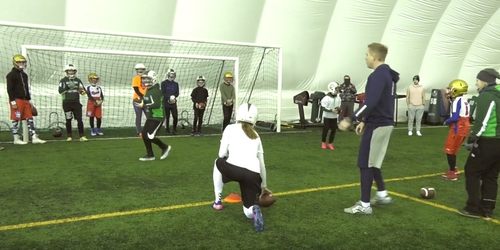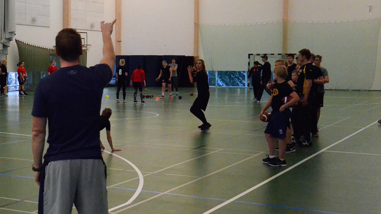 Penkin opit otettiin vastaan innostuneesti ympäri Suomea. Leireihin ja koulutuksiin osallistui 22 seuraa, 34 pelinrakentajaa sekä 35 valmentajaa. Texasista Suomeen lennähtänyt pelinrakentajavalmentaja Petrus Penkki aloitti valmennusurakkansa Solvallan leirillä 20.tammikuuta ja päätti sen 1-tason Air-valmennuskurssilla 3. helmikuuta. Väliin mahtui toinen leiri Seinäjoella sekä nuorten maajoukkuepelinrakentajien harjoittamista Mäkelänrinteen urheilulukiossa. Petrus Penkin pelinrakentajakoulutuksiin osallistui yhteensä 34 pelinrakentajaa sekä 35 valmentajaa. Seurat olivat aktivoituneet koulutuksiin laajalla rintamalla ja mukana koulutuksissa oli yhteensä 22 eri seuraa. - Leirit olivat erittäin hyvä kokemus omasta puolestani. Leireillä oli paljon eri-ikäisiä suomalaisia pelinrakentajia ja seuraavia valmennustapahtumia on helpompi suunnitella. Saimme myös paljon videomateriaalia harjoituksista. Jatkossa voimme myös tuottaa jakelukelpoista materiaalia, kun drillit ja kuvakulmat on mietitty ennakkoon. Koulutuksissa valmentaja-pelaaja-akseli on erittäin toimiva tapa jalkauttaa osaamista. Petrus Penkin ensimmäiseltä mentorilta NFL coach Ken Meyerilta siirtyneet opit pätevät edelleen. Penkki korosti katseen ratkaisevaa merkitystä. Ripeällä jalkatyöllä ei ole paljon merkitystä jos pelinrakentaja tuijottaa kengän kärkiään. Penkki korosti tekniikkaharjoittelusta lantion oikeaoppista käyttöä, jonka avulla heittoon saadaan ”sinappia” aivan eri voimalla. - Futis on muuttunut vuosien saatossa. Enää kukaan ei heitä 7 askeleen dropista 20 jaardin poikkikuvioita. No-huddle on muuttanut pelin. Peliä on yksinkertaistettu ja kentällä liikutaan nopeasti. Texasin high school futiksessa ei välttämättä käydä huddlessa ollenkaan. Nykyään vallalla oleva pitkä aloitussyöttö shotgun ja spread-muodostelmat ovat selkeyttäneen pelinrakentajan toimintaa. Pelinrakentajan on helpompi tunnistaa blitzit ja heittosuojauksen kutsuminen helpompaa Pelinrakentajan on harjoiteltava keskimäärin enemmän kuin muiden pelipaikkojen pelaajien. Ensin on oltava tarkka heittäjä, jonka jälkeen voidaan opetella reagointeja esimerkiksi eri heittopuolustuksia vastaan. - Ei kannata tehdä mitään mihin ei ole fyysisiä valmiuksia. Jos pelinrakentaja ei pysty heittämään 90% varmuudella hitchiä, niin miten vaikeammat kuviot voisivat onnistua tehokkaasti. Fokuksen pitää olla heti harjoituksen alusta lähtien kunnossa. Valmentajien tulee vaatia heti ensimmäisistä easy upeista lähtien terävää suorittamista. Se vie eteenpäin Valmentajan tulee jalostaa omaksi hyökkäystavakseen sellainen systeemi, jonka tuntee hyvin. Heittopelien tulee sitoutua juoksupeleihin ja toimia niiden jatkumoina. Pelinrakentajan pelaaminen on jatkuvaa päätöksentekoa. - Texasissa teen esimerkiksi10-vuotiaan pelinrakentajan aina harjoituksen lopuksi 2-minuutin hyökkäysharjoituksen. Kerron hänelle mielikuvan kentällä, kuten kaksi safetyä ja hyökkäyksellä on kolme kuviota fade, hitch ja slant. Kenelle qb heittää? On tärkeää totuttaa pelinrakentaja tekemään päätöksiä Yksityiskohtien hiominen kuuluu myös pelinrakentajan arkeen. Penkki haluaisi kiinnittää huomiota esim. pelikutsun kertomisen rytmitykseen sekä aloitussyötön simulointia jatkuvasti. - Kutsu peli kerran ja rytmikkäästi. Pelikutsumisen liittyvät pienet tauot ja paloittelu, josta eri hyökkäyspelaajat saavat oman osuutensa pelikutsusta.