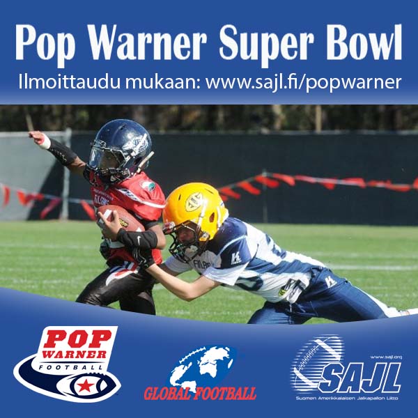 Global Footballin järjestämä Pop Warner International Super Bowl 63 -turnaus järjestetään Disneyn ESPN Wide World of Sports alueella Orlandossa Floridassa 6.12.-18.12.2019. Tapahtumassa pelataan kansainvälinen U13 ja U15 ikäryhmien turnaus. Turnauksen lisäksi osallistujat pääsevat seuraamaan NFL-ottelua ja vierailemaan ja Disney Worldissa. Pop Warner turnaukseen osallistuva valmennus ja staff on nyt valittu: