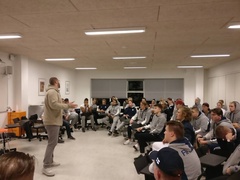 2017 U17 PM-kisoissa Gridiron Importsin Björn Werner piti valaisevan esityksen USA:n yliopisto ja high school pelaamisesta ja opiskelemisesta maajoukkuepelaajille.