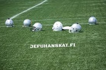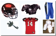 Amerikkalaisessa jalkapallossa pelaajat käyttävät suojavarusteita, joista olennaisimmat ovat kypärä, hartiasuojat, lonkka- reisi- ja polvisuojat sekä hammassuojat. Harjoiteltaessa on käytössä on oma harjoituspeliasu jossa on lajiin soveltuvat housut ja paita. Edellämainitut suojat kuuluvat perusvarustepakettiin ja ne maksavat tasosta riippuen noin 200-400 euroa.
