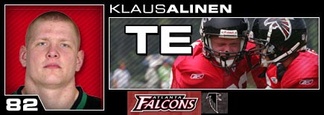 Klaus Alinen allekirjoitti tammikuussa 2006 kaksivuotisen sopimuksen NFL joukkue Atlanta Falconsin kanssa. Ensimmäinen vuosi kului NFL:n kansainvälisten pelaajien kehitysohjelmassa ja Alinen pääsi pelaamaan erikoisjoukkuetilanteita pre seasonilla mm. Japan Bowlissa Tokiossa. Ankara taistelu paikasta joukkueeseen loppui 2007 elokuussa, kun hänet leikattiin leirin lopussa varsinaisesta miehistöstä.