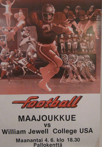 Missourilainen yliopistojoukkue William Jewell Cardinals vieraili ensimmäisenä amerikkalaisjoukkueena Euroopassa. Yliopistojoukkue pelasi historialliset kaksi ottalua Suomen maajoukkuetta vastaan kesäkuun alussa 1984. Cardinals kuului tuolloin NAIA koulujen aatelistoon ja sen voittosaldo oli neljältä edelliseltä kaudelta 47-3 ja lisäksi joukkue oli noussut sarjansa loppuotteluihin neljästi peräkkäin ennen Suomen vierailua. Nykyisin William Jewell pelaa NCAA II-divisioonassa.