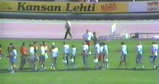 Varsinkin suomalaisten puolustus pysyi ajoittain hyvin mukana ottelussa. Matti Lindholm oli jo tuolloin kentän näkyvin suomalaispuolustaja ja hän haki Jarkko Salmisen kanssa amerikkalaispallonkantajia koko kentän leveydeltä.