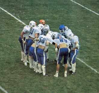 Maajoukkue pelasi toisen kerran USA:laista yliopistojoukkuetta vastaan vuonna 1985. Ottelun areenana oli suomalaisen jenkkifutiksen pyhättö Helsingin Pallokenttä, jonne saapui michiganilainen Alma College Scotts. Ottelussa oli samanlaiset sävelet kuin vuotta aiemmassa Cardinals-ottelussa. Suomalaiset saivat aikaan muutamia kunnon hyökkäyksiä, jotka päättyivät puoleenkenttään. Ottelussa maajoukkueen päävalmentaja new yorkilainen Al Tambarellin tarkkaili 48 suomalaispelaajaa matkalla EM-kisoihin, jotka järjestettiin heinäkuussa Italiassa.
