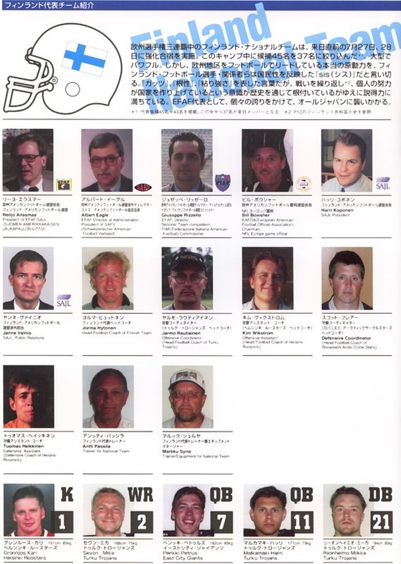 Suomalaisen jenkkifutishistorian yksi suurimmista hetkistä ajoittui tasan 20 taakse Tokioon. Suomen maajoukkue edusti Eurooppaa NFL:n sponsoroimassa Japan-Eurobowl ottelussa, jonka japanilaiset voittivat lukemin 39-7.