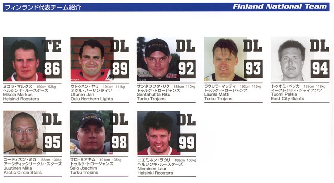 Suomi on kiistatta Euroopan kermaa amerikkalaisessa jalkapalloilussa. Kahdeksan kertaa järjestetyistä EM-kilpailuista Suomi on voittanut puolet. Komein kannu on taisteltu Suomeen vuosina 1985, 1993, 1995 ja 1997. Lajin taso Japanissa on melkoinen arvoitus, mutta osviittaa antaa pitkät perinteet. Nurmikenttien shakiksikin luonnehdittua peliä on pelattu Japanissa jo vuodesta 1930, kun Suomeen laji juurtui vasta 70-luvulla. Harrastajia Japanista löytyy 25000, Suomesta 1500.