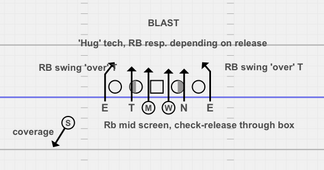 We’ll start with the BLAST. This 6-man scheme has been a part of our playbook for a long time. It was run out of a 42 stack look for years, with crossing blitzers etc. And has now become a part of the Wide Package.