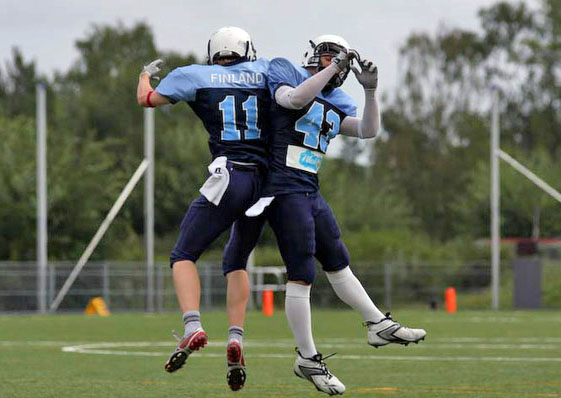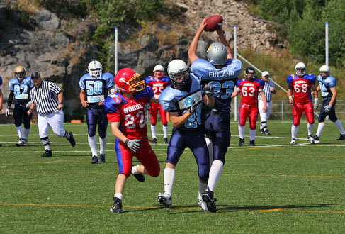 Suomen nuorten maajoukkue tuo Norjan PM-kisoista mukanaan pronssimitalit. Suomi kukisti isäntämaan lauantaina pelatussa pronssiottelussa 28-0 (6-0). Oulun Northern Lightsin keskushyökkääjä Mika Nissinen teki Suomen kaksi ensimmäistä touchdownia. Maalialueelle pääsivät myös TAFTia edustava pelinrakentaja Miro Kadmiry sekä Roostersin laitahyökkääjä Olli Weman.