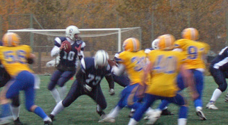 Suomen puolustus pelasi hyvän pelin antaen Ruotsille vain 4 ensimmäistä yritystä. Näistäkin 3 tuli rangaistuksilla. Juoksujaardeja Suomi ei antanut Ruotsille yhtään ja heittämälläkin vain 37 jaardia. Suomi nappasi vielä 2 syötönkatkoa ja 2 rähmäystä haltuunsa, joten tältä osin Suomen peli oli hyvissä kantimissa. Hyökkäyksen puolella juoksujaardeja kertyi 22 ja heittämällä 135. Heitetyt 5 syötönkatkoa antoivat Ruotsille kuitenkin pallon liian monta kertaa. Kun tähän lisää vielä Suomen menettämät 5 rähmäystä, voidaan todeta Suomen hävinneen pallon menetykset 10-4. Ruotsi kylläkin rähmäsi pallon kaiken kaikkiaan 7 kertaa, mutta onnistui viidesti peittämään pallon itse.