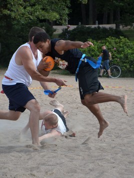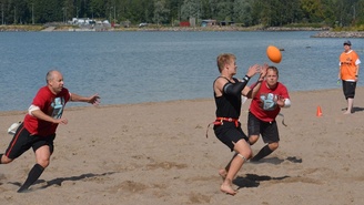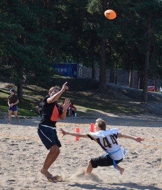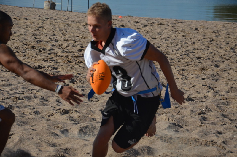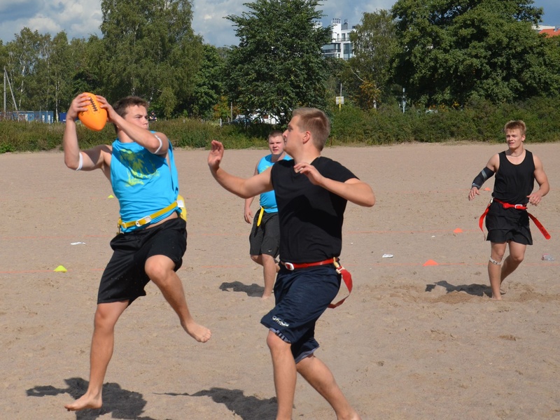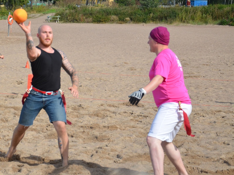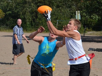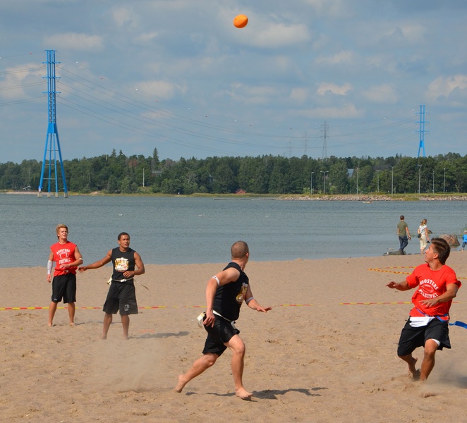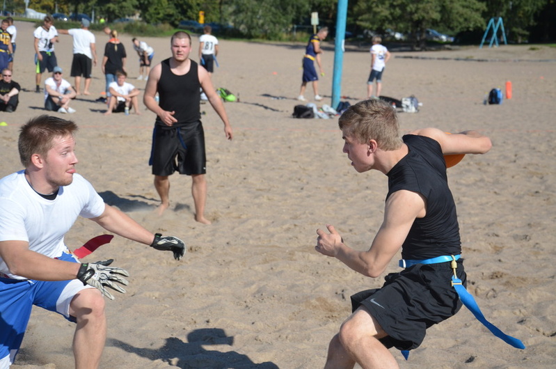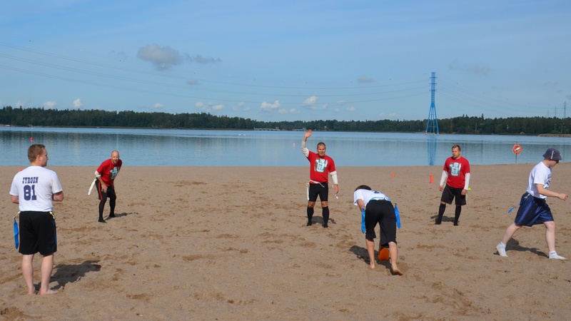 Action Bronsonin tahdissa ja lämpimässä syyskuun auringossa pelattiin uudistuneilla IFAF säännöillä maustetut beach flagin SM-kisat. Kuusi joukkuetta pelasi napakat alkulohkot. Välierissä P-Town Porvoosta voitti Helsinki Hangoversin. Toisessa välierässä Old School otti nuorten miesten Hesburger Kingsien haasteen vastaan.