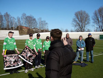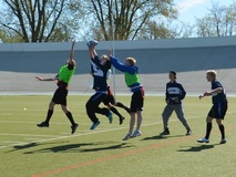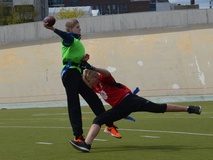 Albert Edelfeltin koulujoukkue laitettiin kasaan pari viikkoa sitten ja joukkue harjoitteli muutaman kerran. Joukkueessamme oli hyvä heittäjä, taitavia kiinniottajia skeä sopivan rämäpäinen pallonkantaja. Osa pelaa lätkää, sentteri oli salibandy maalivahti, muutamalla on jenkkifutistaustaa.