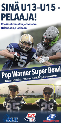 Global Footballin järjestämä Pop Warner International Super Bowl 62 -turnaus järjestetään Disneyn ESPN Wide World of Sports alueella Orlandossa Floridassa 1.12.- 9.12.2018. Tapahtumassa pelataan 2007-2005 ja 2005-2003 syntyneiden kansainvälinen turnaus.